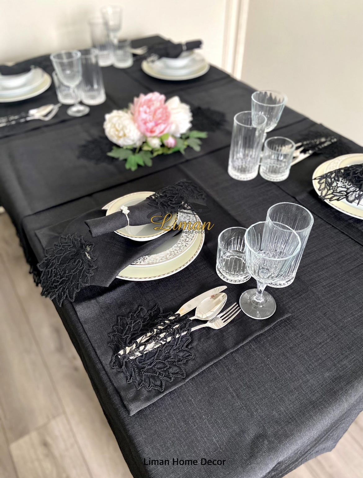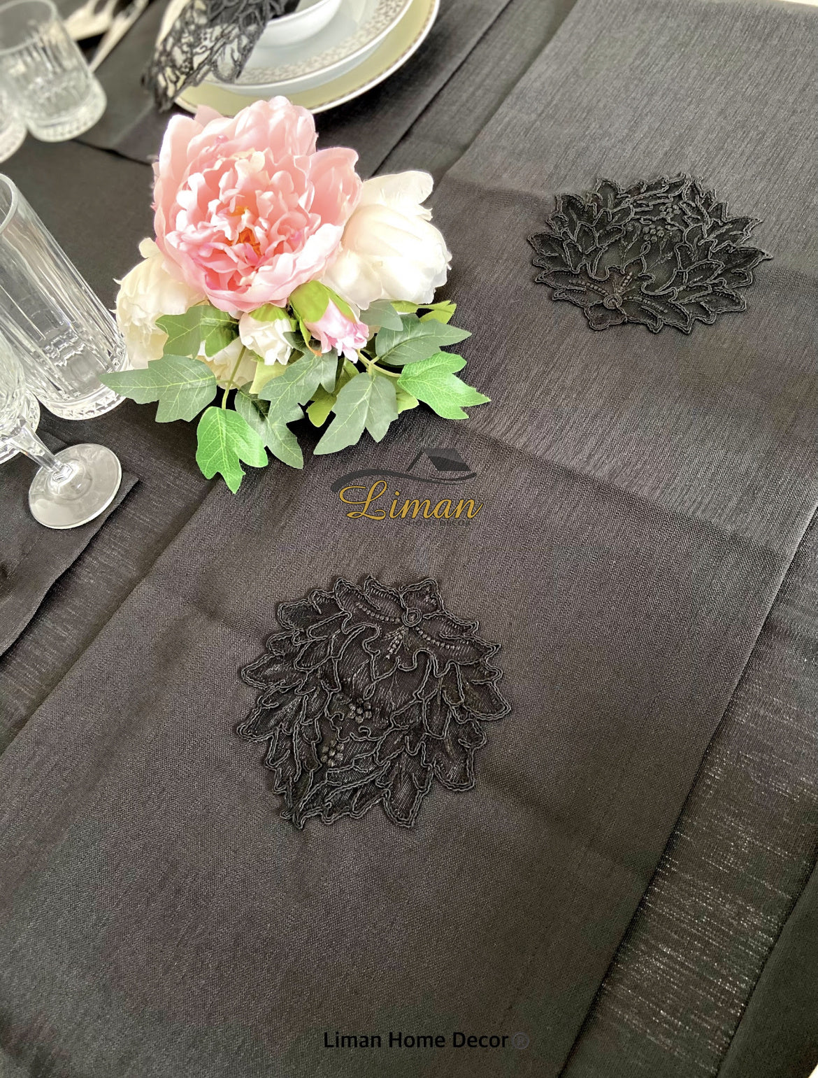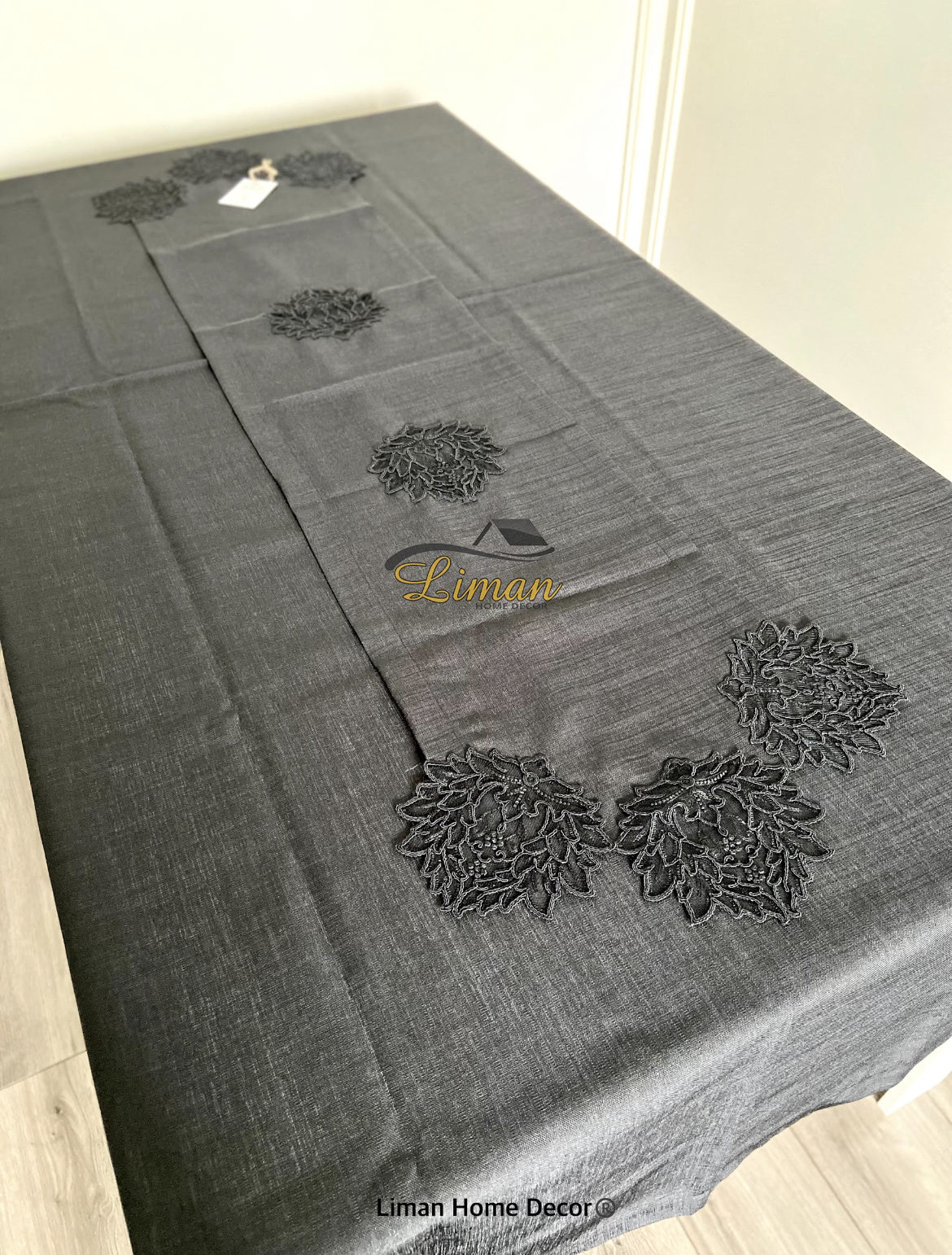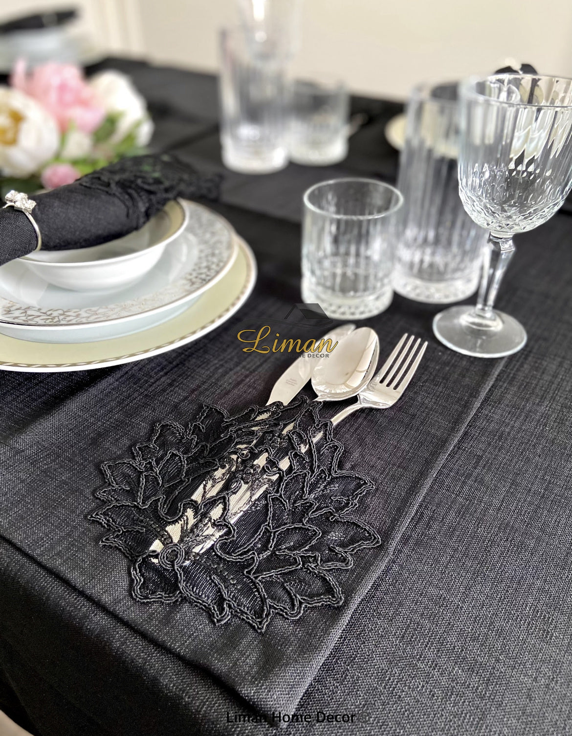 Cinar Tafelkleed Set Met Placemat Zwart 34 Delig