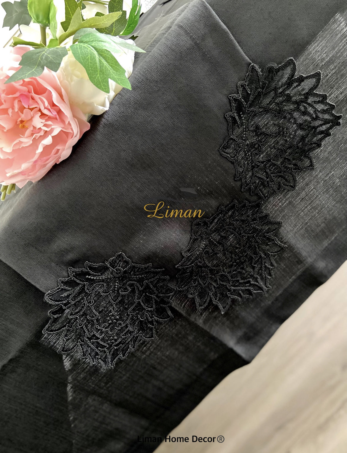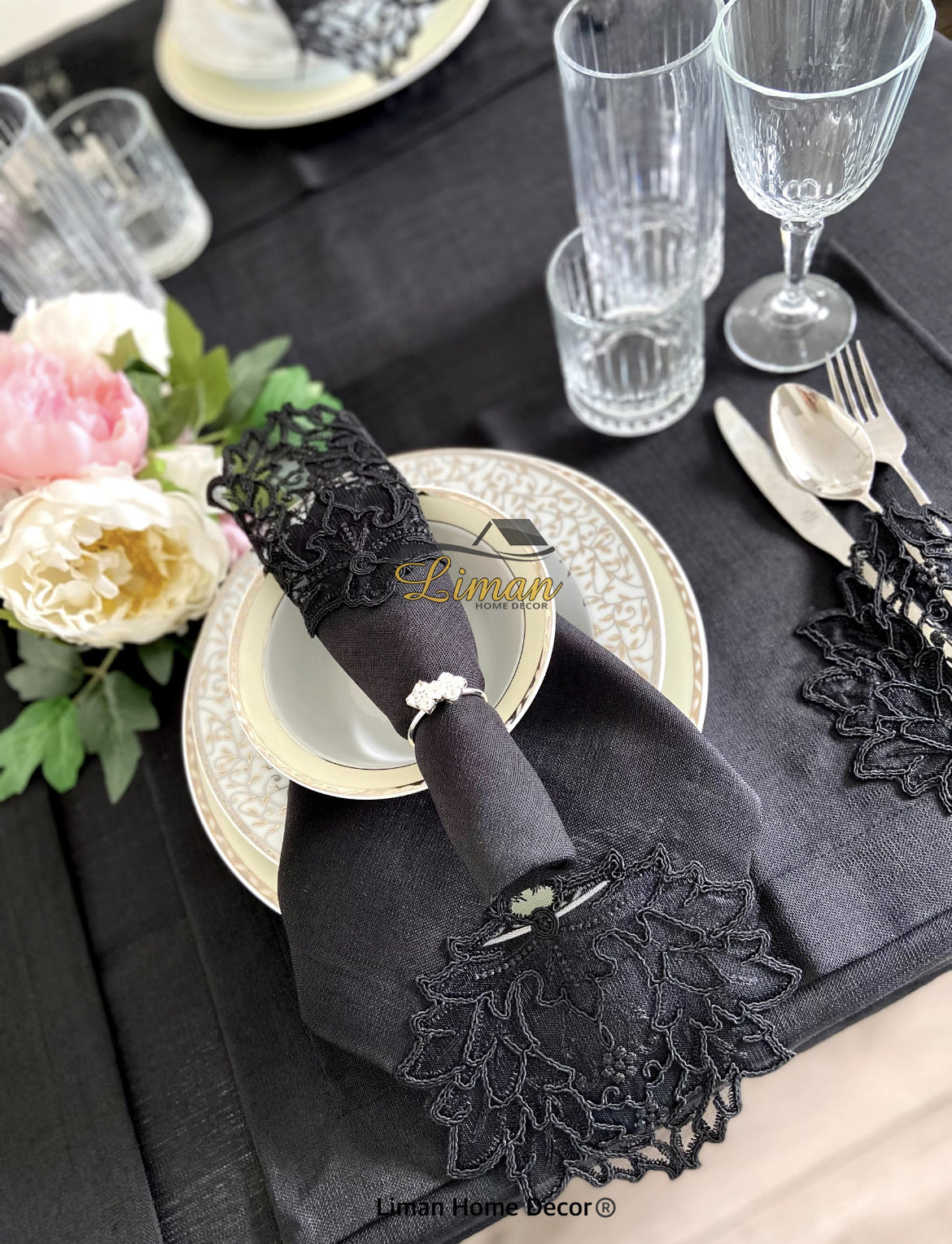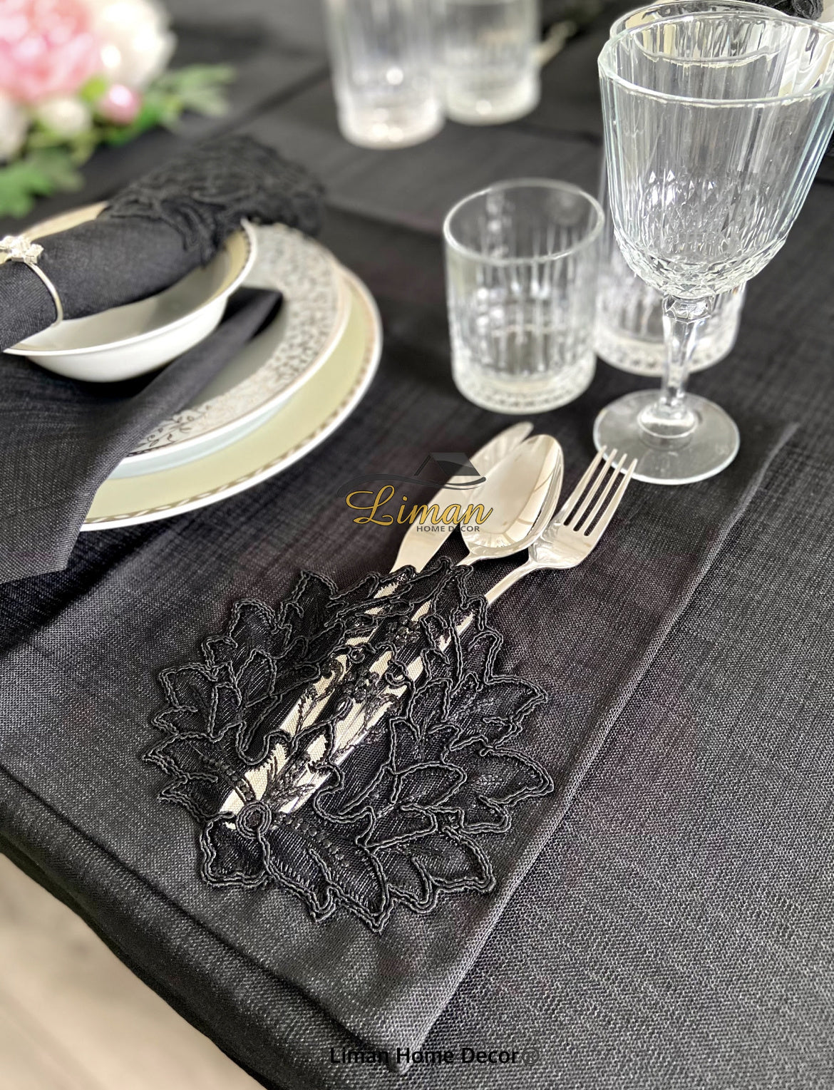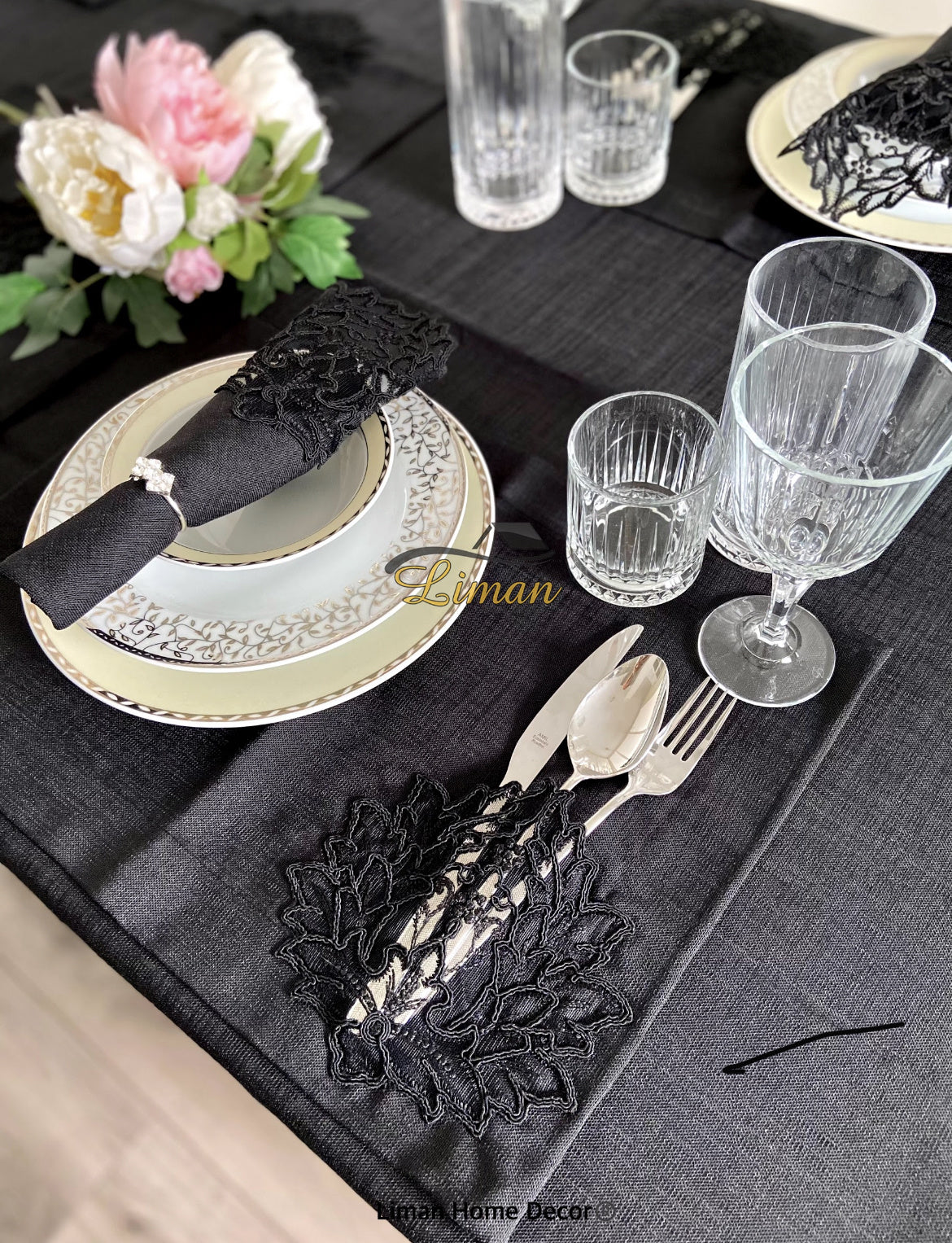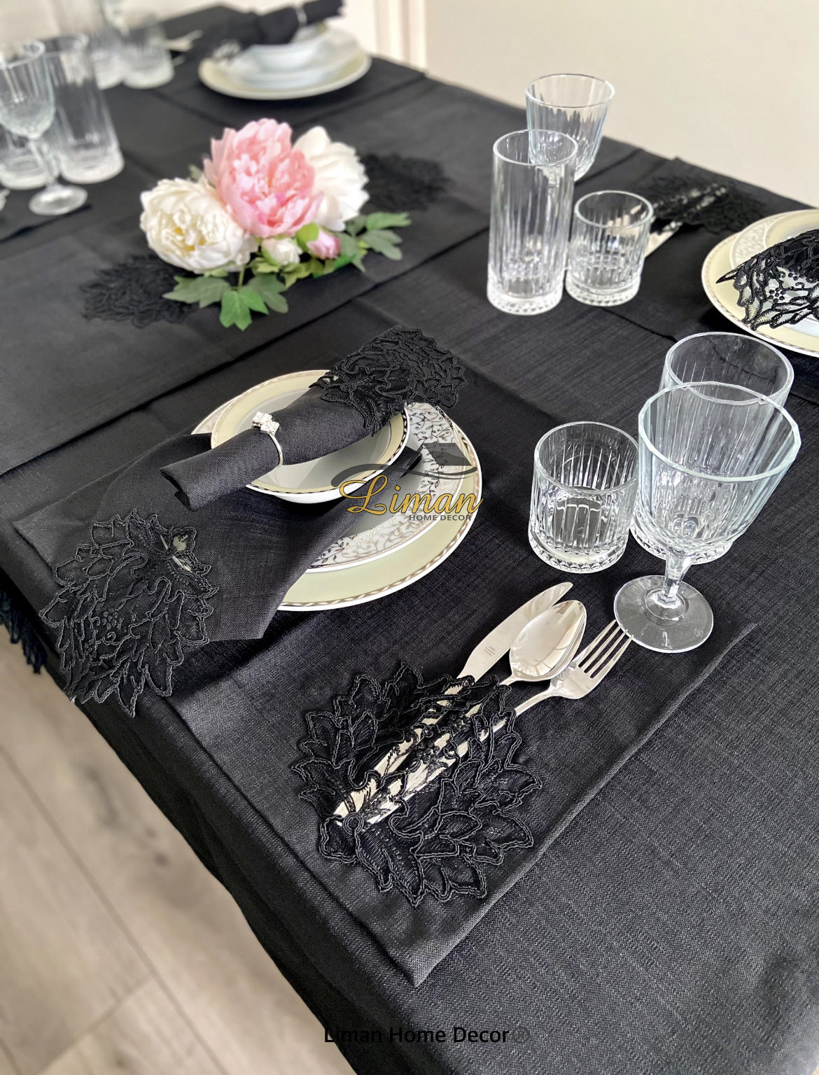 Cinar Tafelkleed Set Met Placemat Zwart 34 Delig