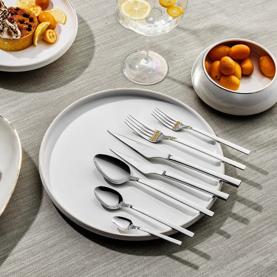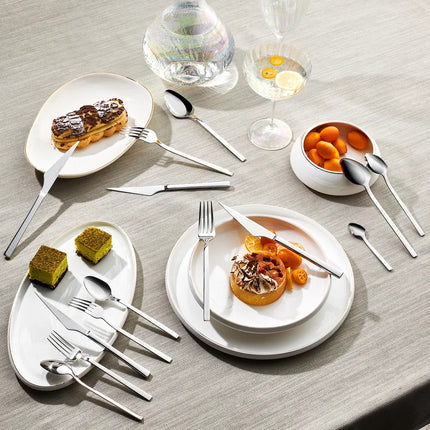 Setinhalt 12 Gabeln 12 Esslöffel 12 Messer 12 Dessertgabeln 12 Dessertlöffel 12 Dessertmesser 12 Teelöffel Material: Stahl