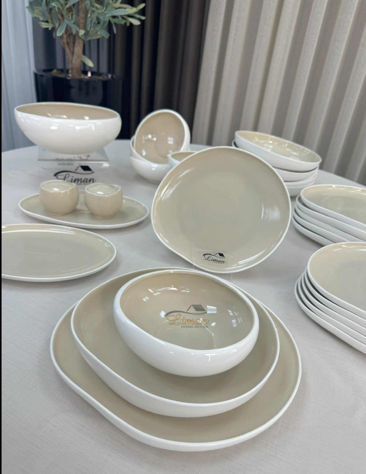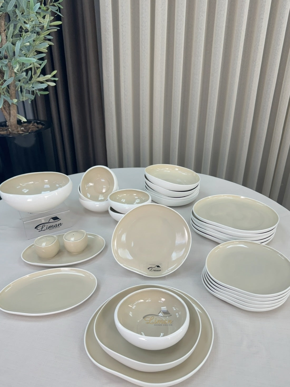 New Cupido Beige – 29-teiliges Tafelservice mit organischen Formen Dieses schöne Geschirrset wird mit einer reaktiven Glasurtechnik hergestellt. Dies bedeutet,...
