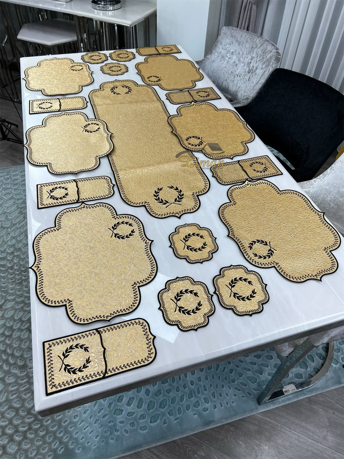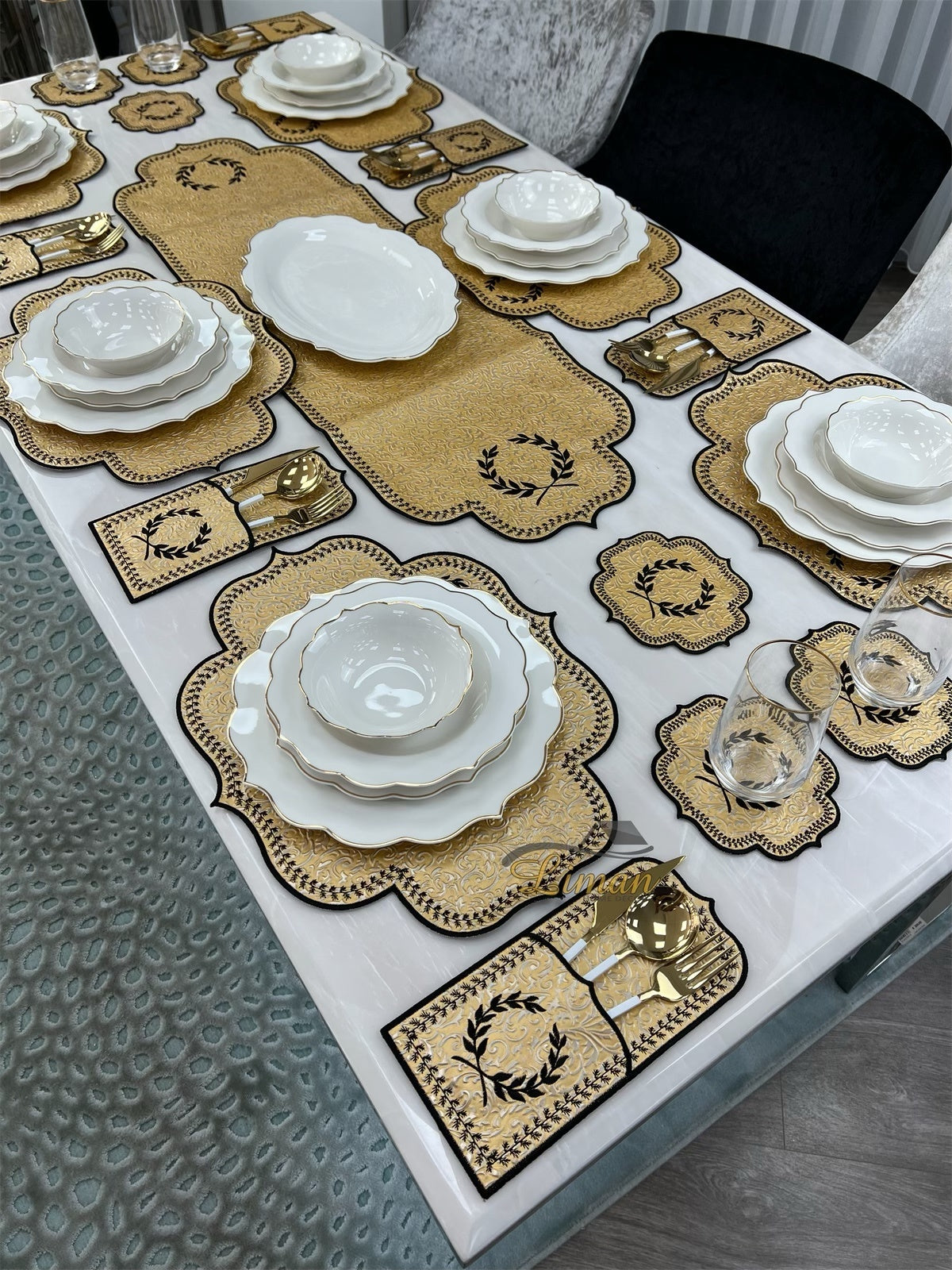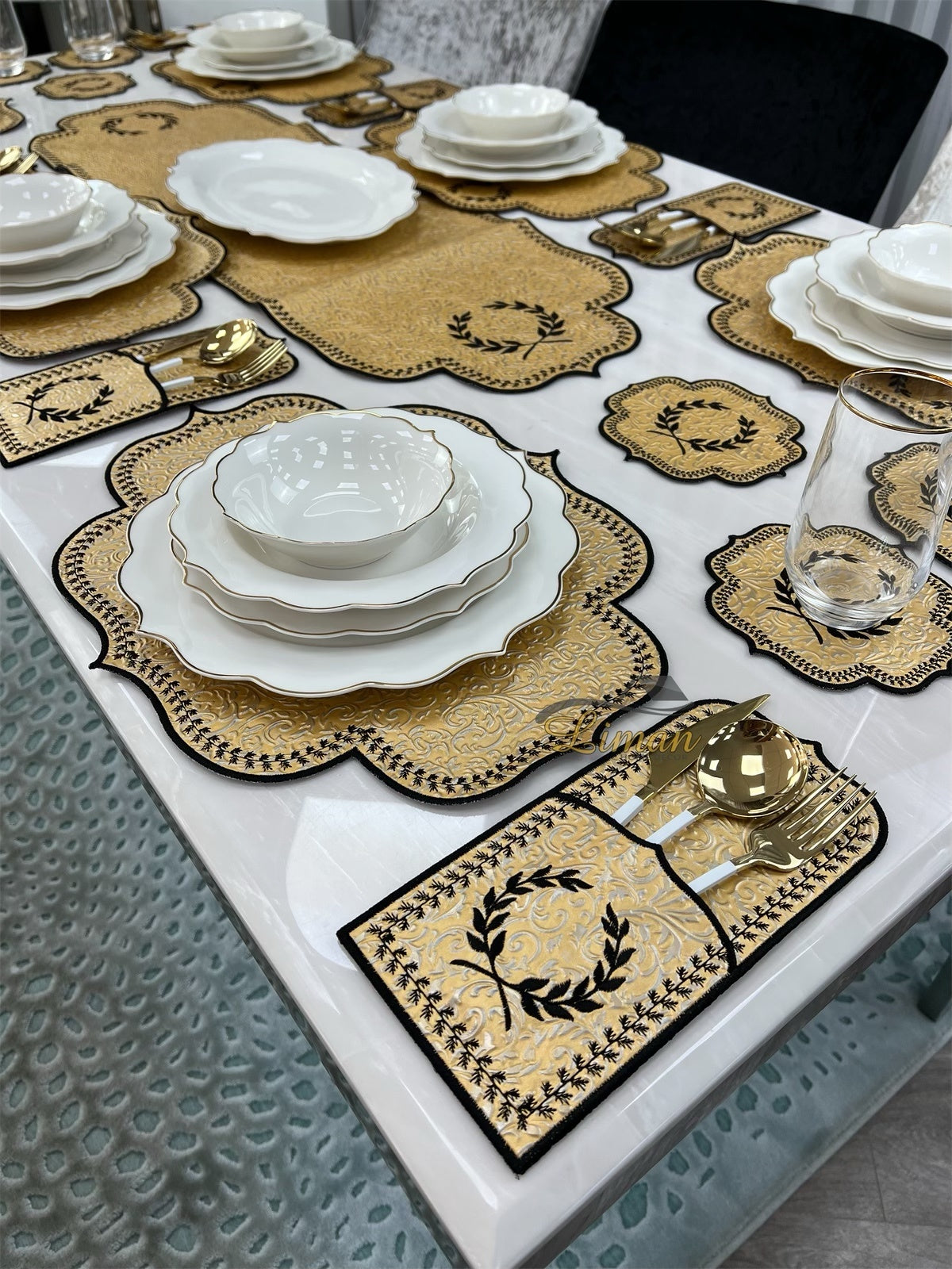 Inhoud:6 x Placemat6 x Glas onderzetter6 x Bestekhouder1 x Runner Het wordt geadviseerd om niet te wassen in de wasmachine