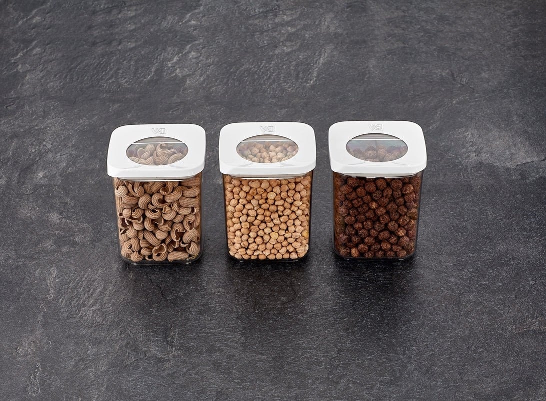 Deze handige voorraadpotten maken de keuken compleet. De set bestaat uit 3 voorraaddozen waarin verschillende voedingsmiddelen opgeborgen kunnen worden. Denk bijvoorbeeld aan theezakjes, kruiden of andere lekkernijen.