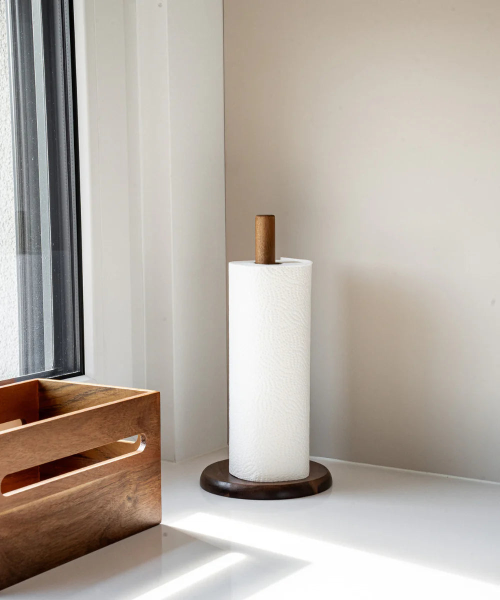 The Acacia Lumo paper towel holder brings natural warmth and simple elegance to your kitchen.