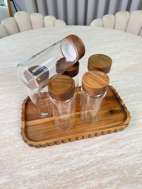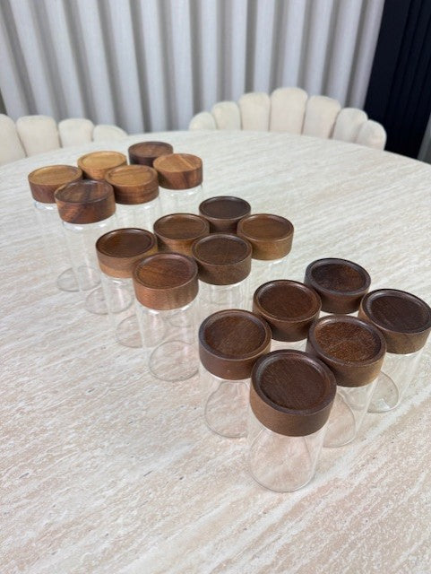This set of six 10 cm acacia spice container is perfect for stylishly organizing and storing your favorite herbs and spices. The compact size fits perfectly in kitchen drawers, spice racks, or on the countertop. The natural acacia finish adds a warm, modern look to any kitchen.