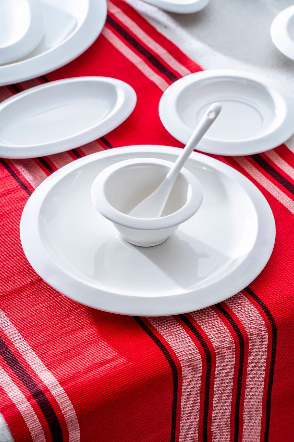 Contents: 6 Serving plates: 20.3 cm 6 Saucers: 12.7 cm 6 Bowls: 8 cm 6 Spoons 2 Large oval dishes:...