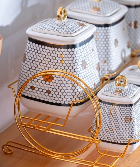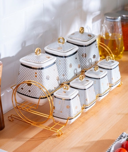Inhoud1 x stand3 x voorraadpot groot4 x voorraadpot klein