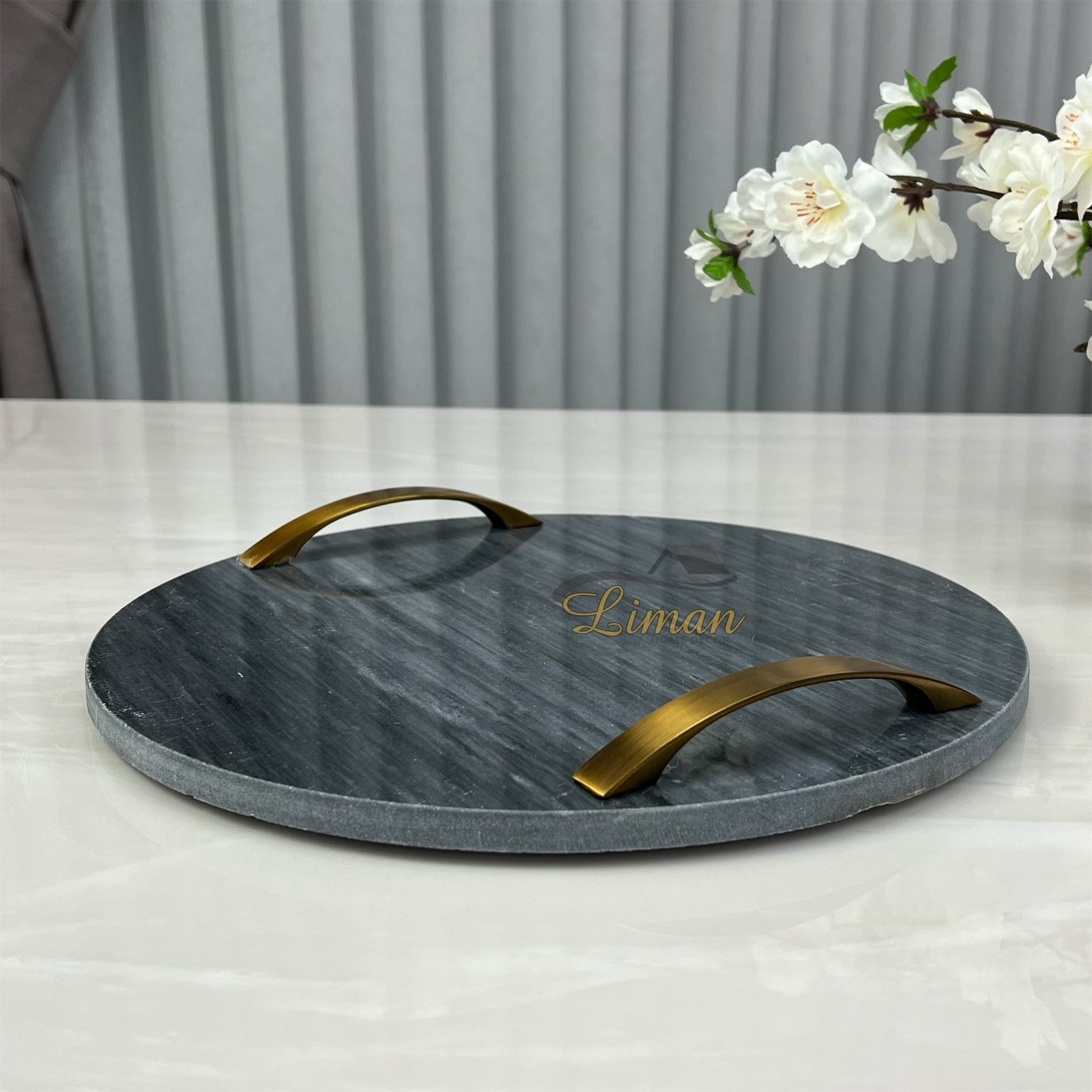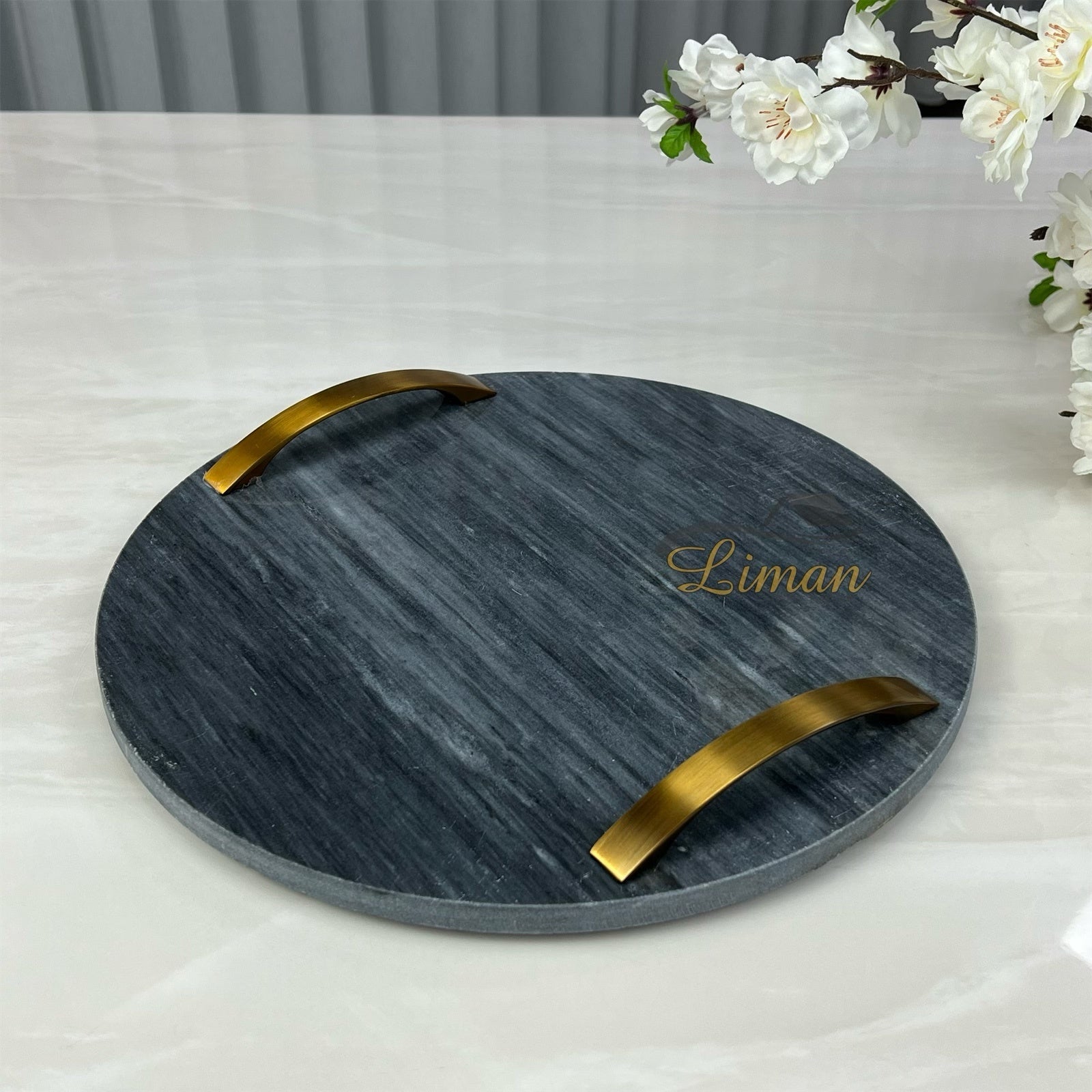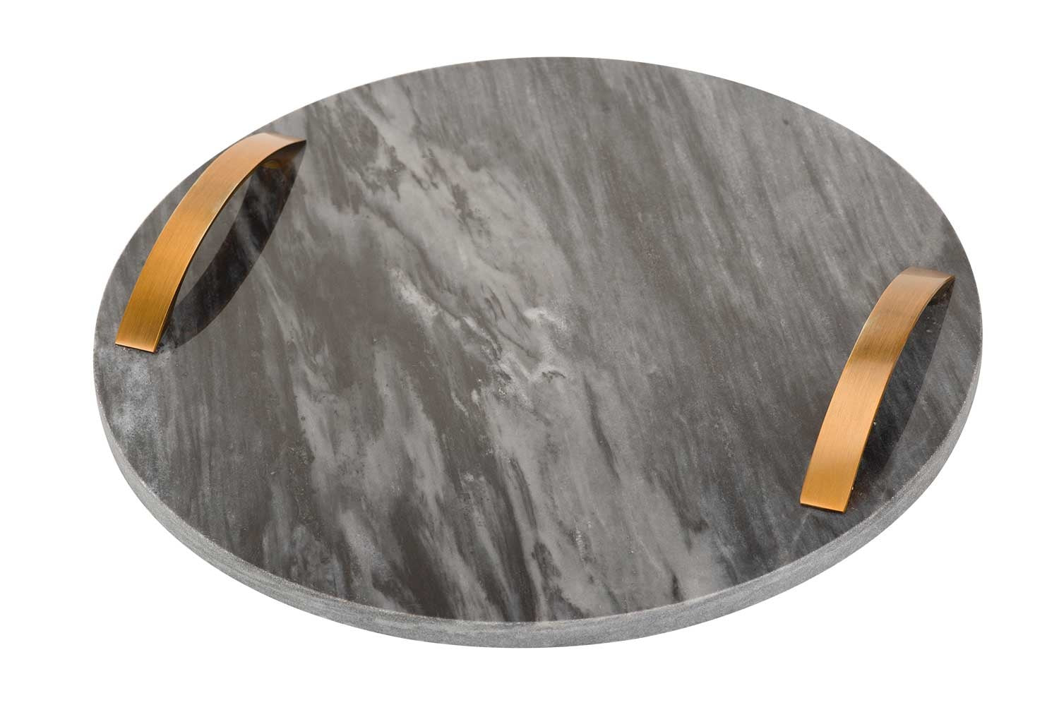 COSY TRAY BLACK D30CM ROUND MARBLE WITH HANDLES