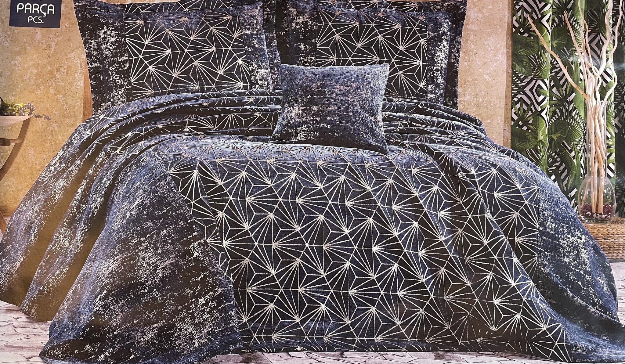 Inhoud:1 x Bedsprei 250 x 250cm2 x Kussen sloop 80 x 60cm1 x Sierkussen 45 x 45cm