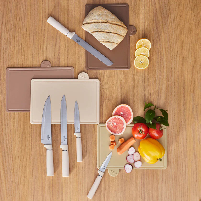 With the Karaca Chef’s Harmony Knife Set, cutting and chopping in the kitchen is now both easier and healthier! Along with 5 different sharp kitchen knives, this set includes 4 cutting boards designed for various types of food such as vegetables, seafood, meat, and cooked dishes so preventing cross-contamination of flavours and keeps everything healthy while you prepare the ingredients for your favourite meals. The set comes with a stylish stand that helps you keep the boards and knives organized on your kitchen benches. To get a long-lasting and trouble-free performance from the knife set, we recommend hand-washing the individual parts. Practical and versatile, this set is ready to take pride of place in your kitchen.