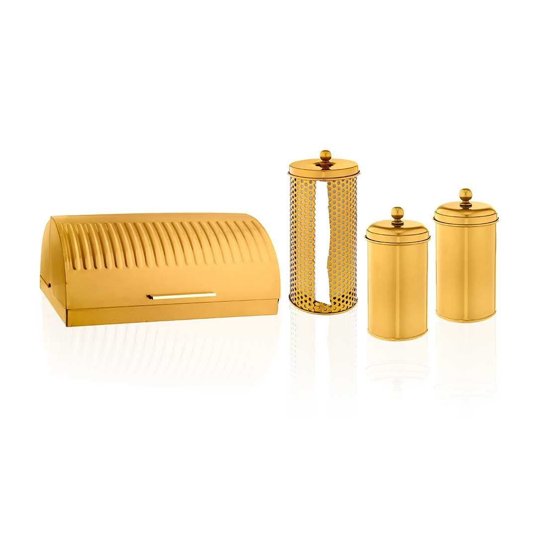Inhoud1 x Broodtrommel 2 x Suiker / Theepot1 x keukenrolhouderHandwas wordt aangeraden voor een optimaal Kwaliteits behoud