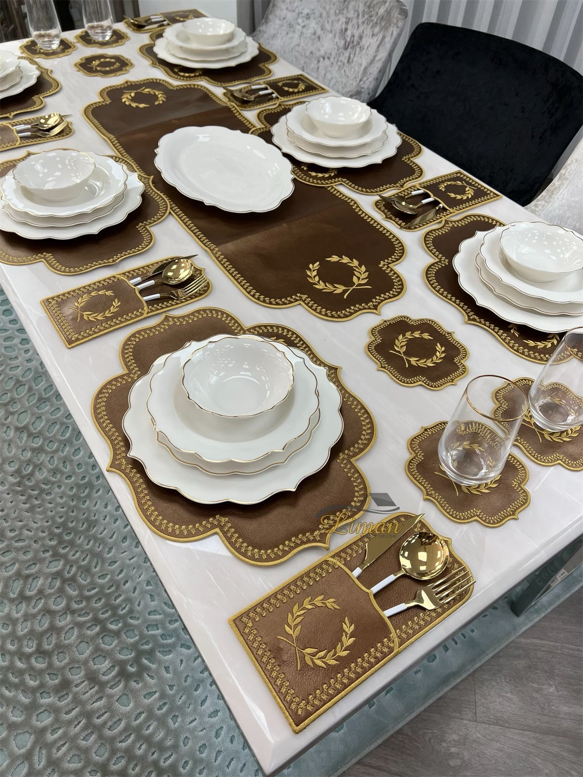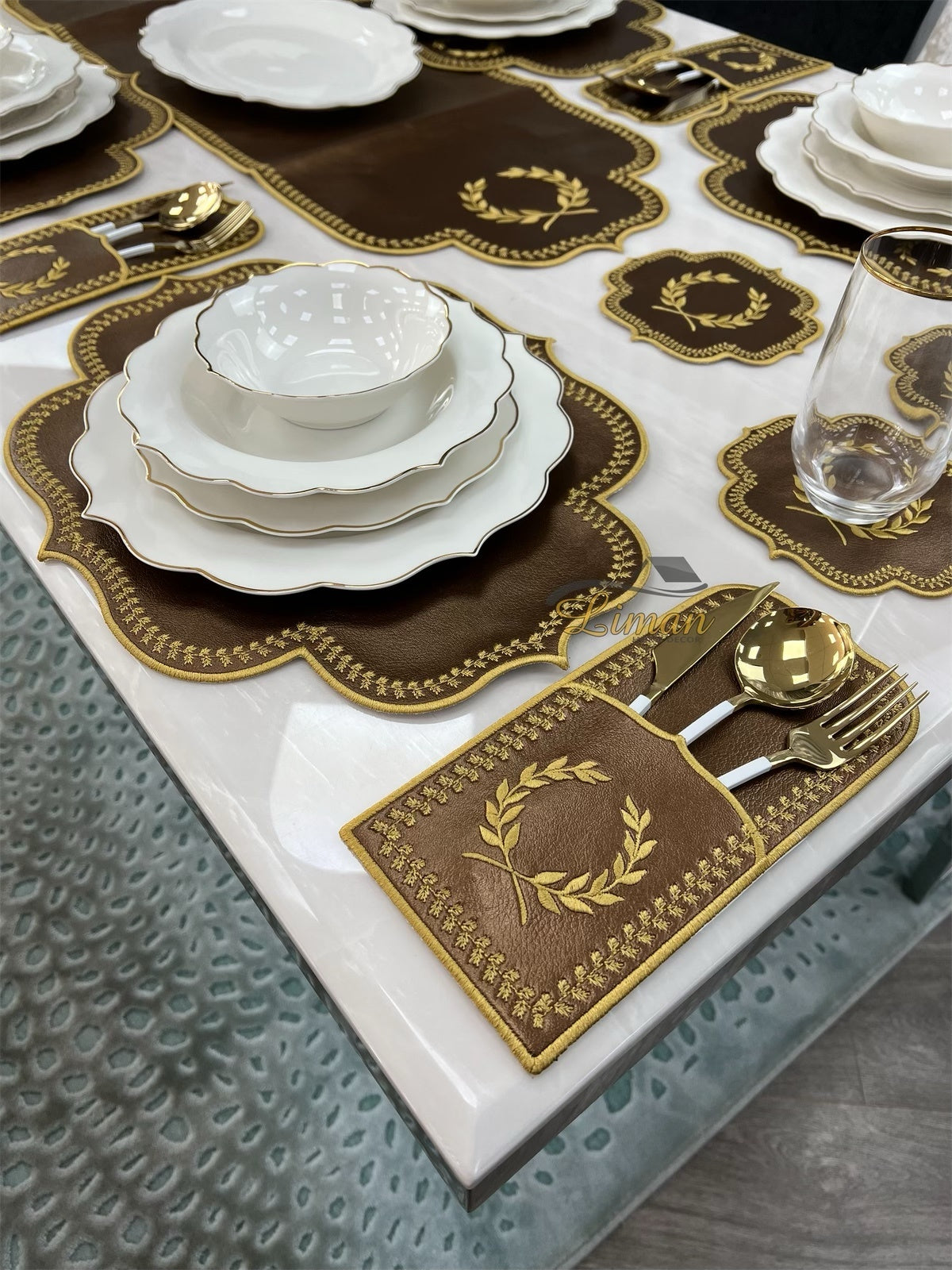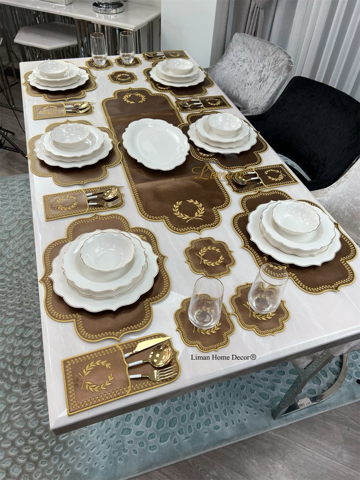 Placematset 19 Delig | 6 Persoons Bruin / Goud