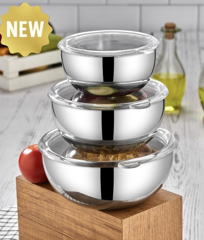 Polochef Protico 3-piece storage containers, stainless steel