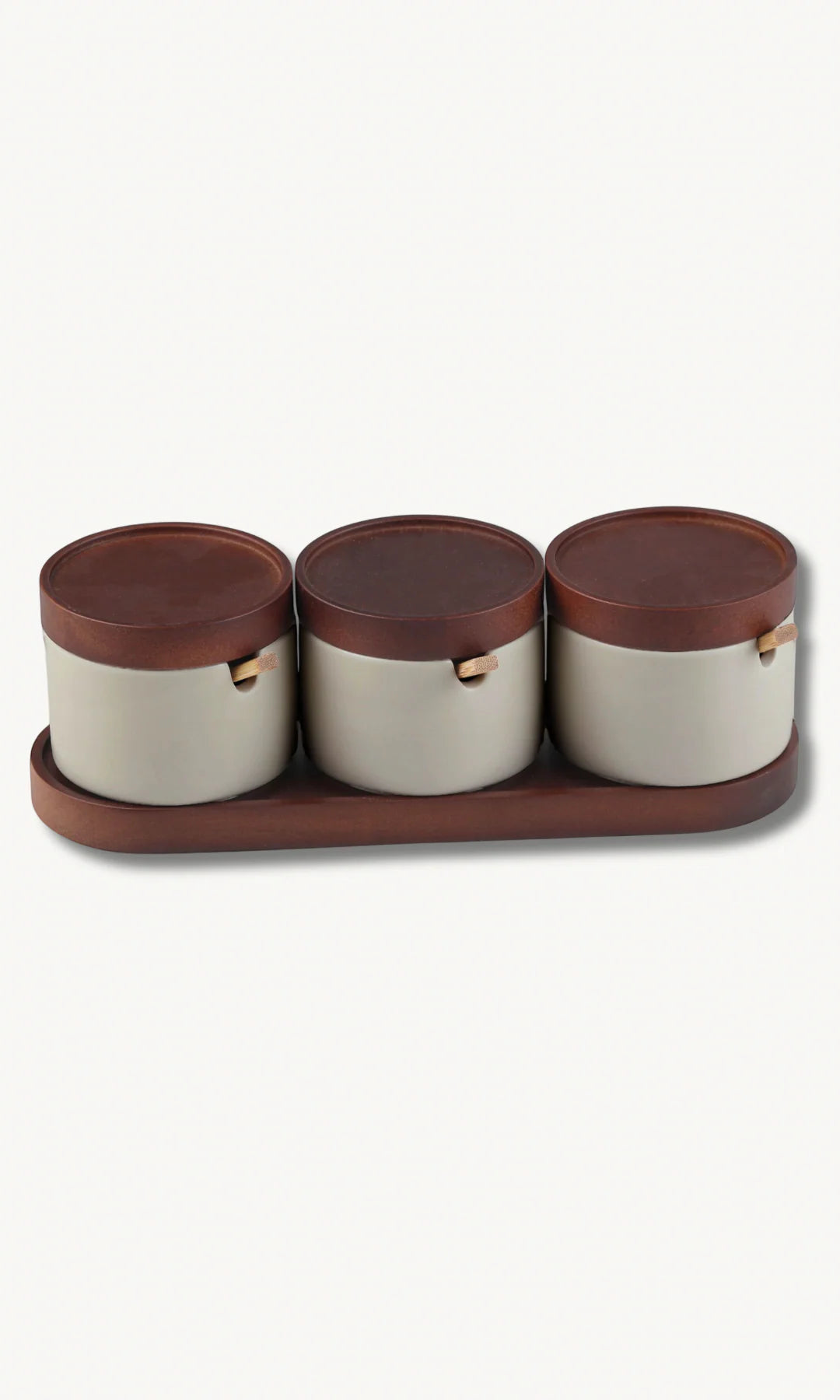 Geef je tafel een stijlvolle, natuurlijke uitstraling met de Terra collectie. Deze elegante Kruiden set combineert een zachte, minimalistische vorm met een warm houten accent. Uitgevoerd in een rustige, neutrale tint en geplaatst in een subtiele houder van acaciahout, ontstaat een verfijnd samenspel tussen modern design en natuurlijke charme.