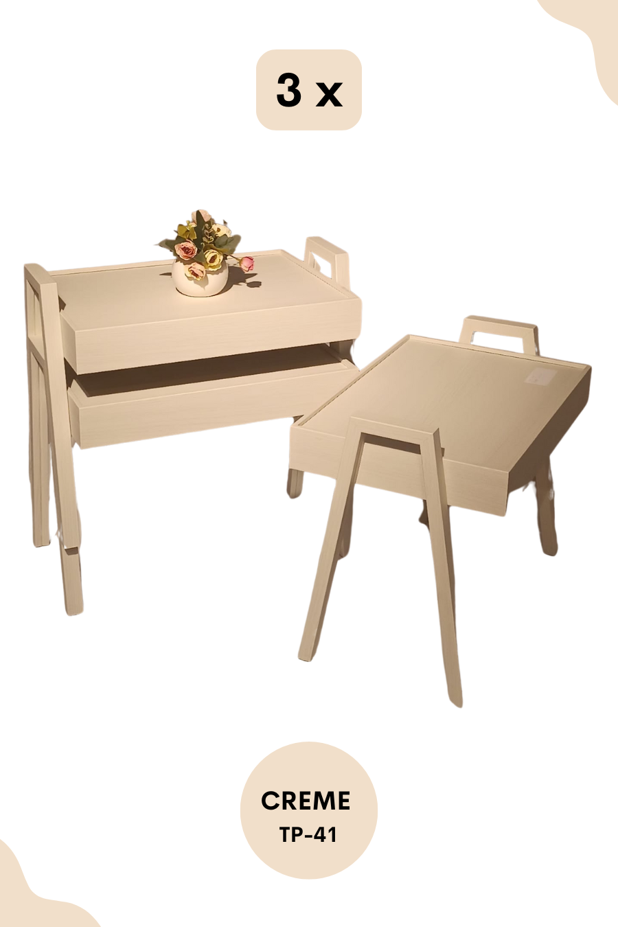 Ontdek de veelzijdigheid van onze 3-delige bijzettafel set! Perfect voor elke ruimte en ideaal als decoratie, koffietafel of voor je favoriete kopje thee. De tafels kunnen eenvoudig op elkaar worden gestapeld voor een compacte opbergruimte, en ze komen in trendy kleuren die elke interieurstijl aanvullen.