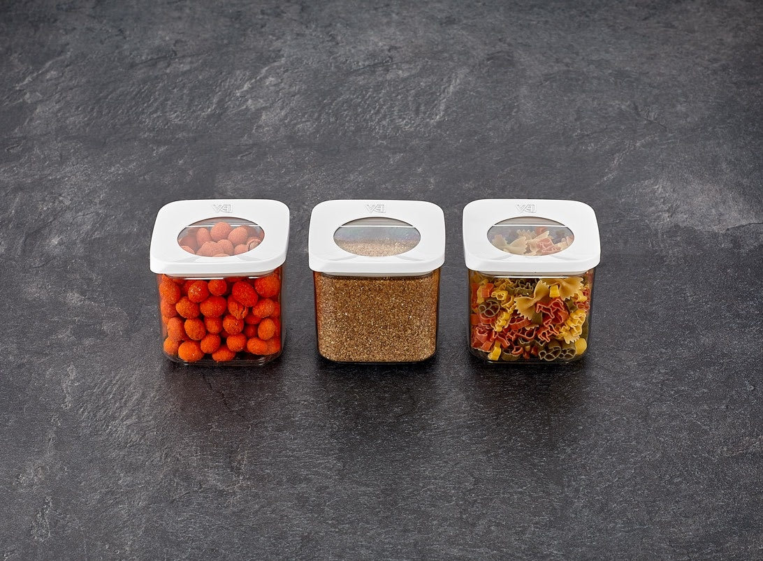 Deze handige voorraadpotten maken de keuken compleet. De set bestaat uit 3 voorraaddozen waarin verschillende voedingsmiddelen opgeborgen kunnen worden. Denk bijvoorbeeld aan theezakjes, kruiden of andere lekkernijen.