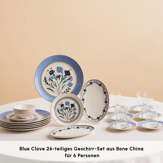 Contenu : 1 Grand plat plat – 27 cm 6 Petits plats plats – 20 cm 6 Soucoupes – 12,5 cm 6 Cuillères à café 6 Coupelles à confiture – 8,5 cm 4 Plats ovales – 18 cm 2 Grands...