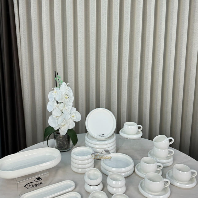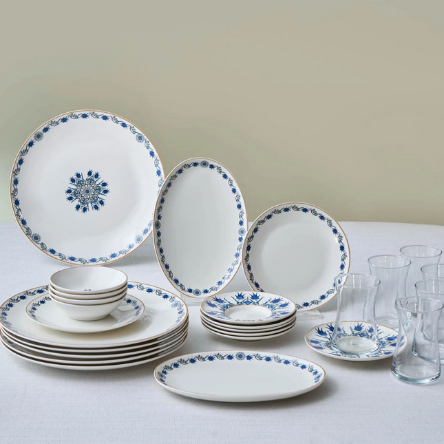Set Includes :6 Service Plate 27 cm6 Pit Plate 22 cm6 Piece Cake Plate 21 cm6 Bowls 15 cm