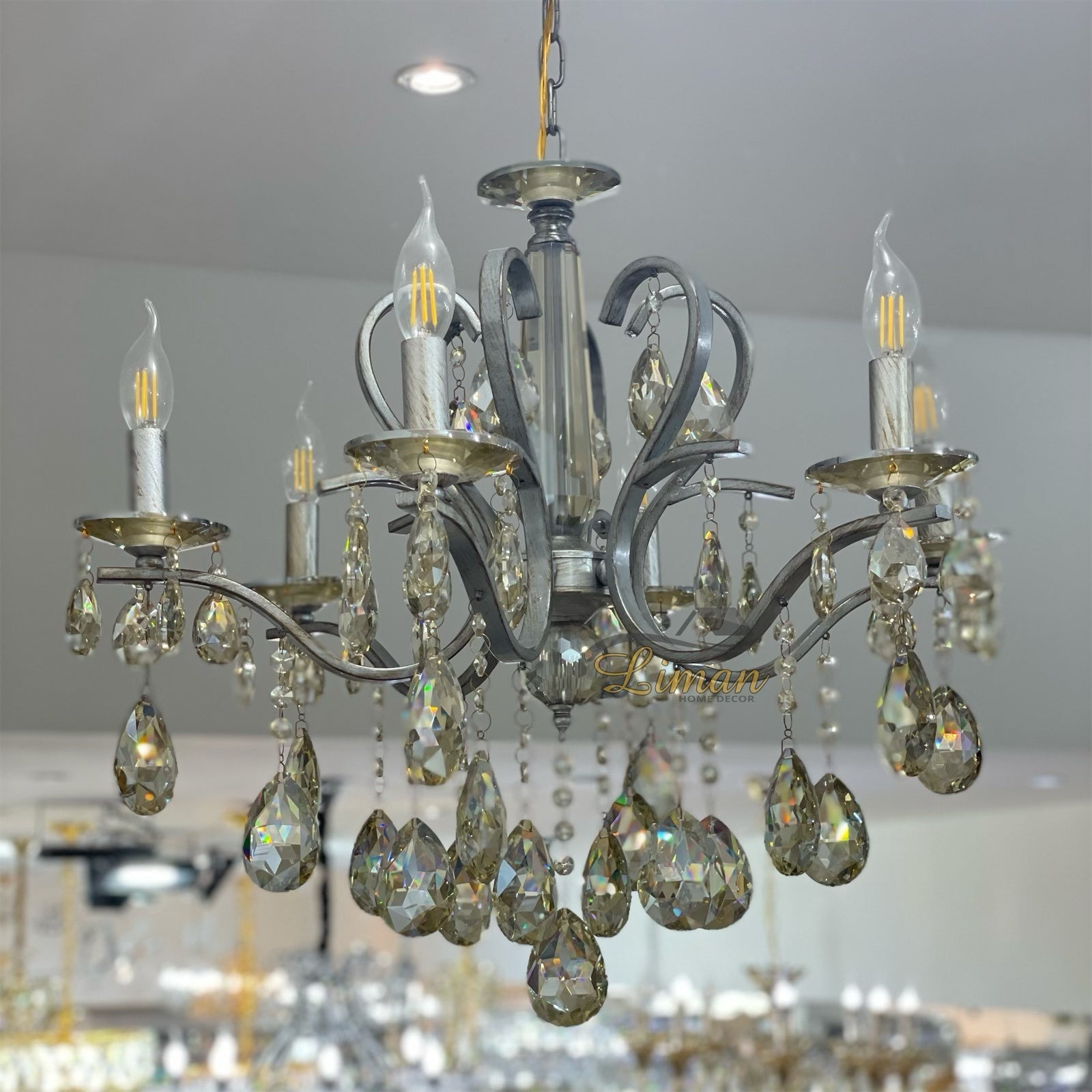 Wondermooie 6 - Armig kroonluchter met klassieke uitstraling Dit is een kroonluchter die de grote romantiek in de woonkamer brengt,...