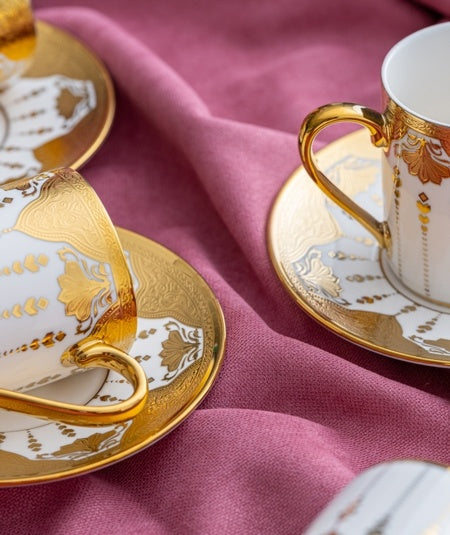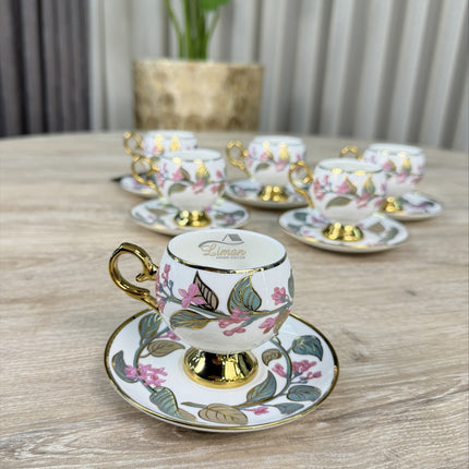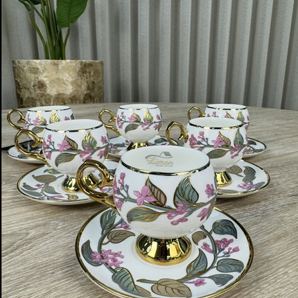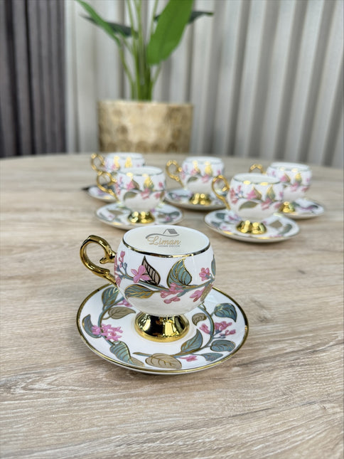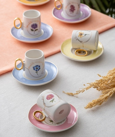 Inhalt des Sets 6 Kaffeetassen (90 ml) 6 Teile Tassenteller Material: Porzellan