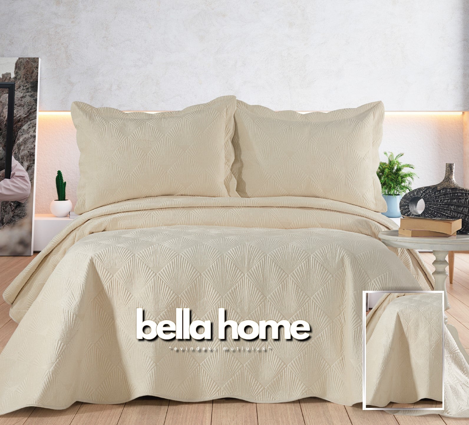 Bella Home Arzen velvet Bedspread 2 persons cream