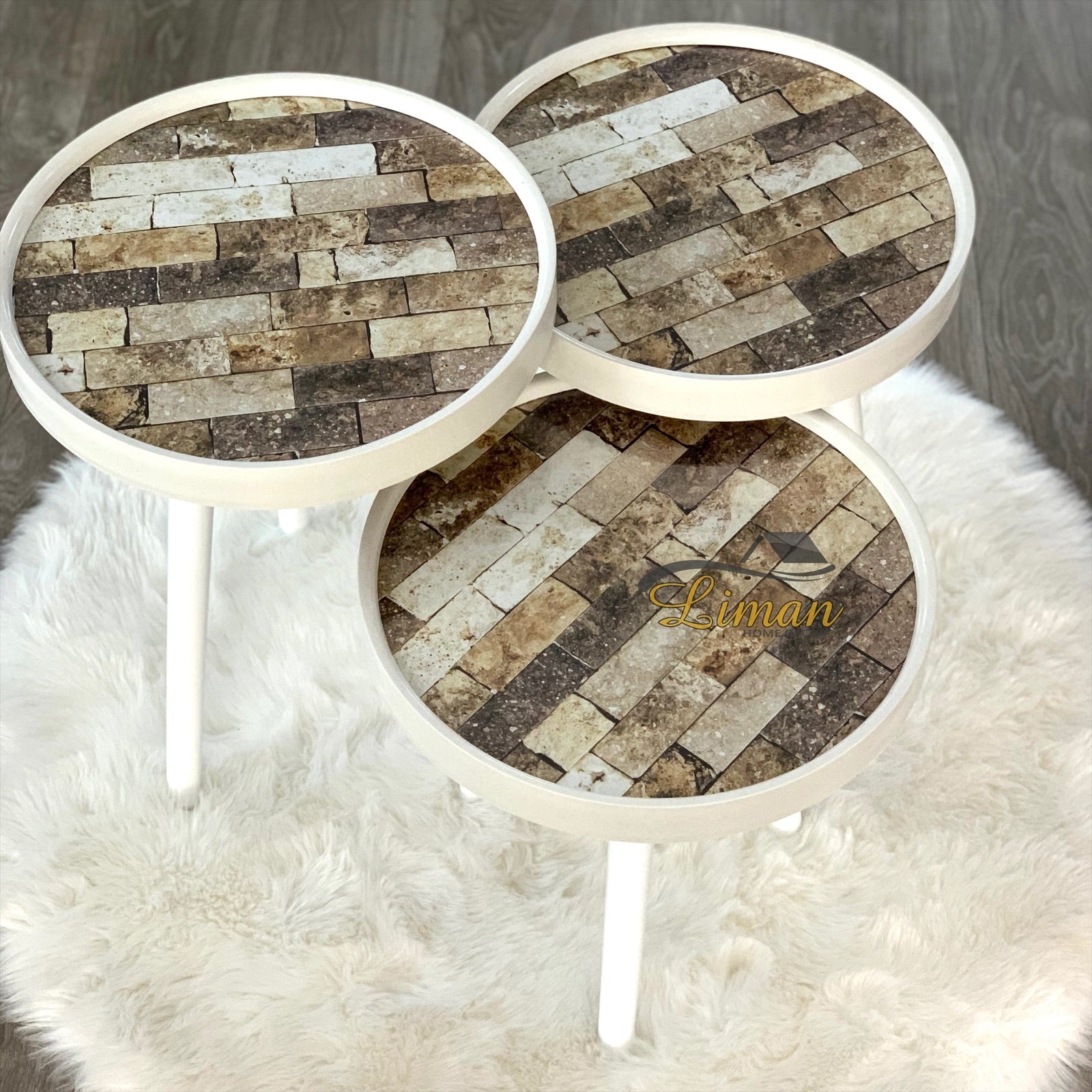 Inhoud:3 x Bijzettafel Afmetingen:Diameter: 39cmHoogte: 52cmHoogte: 47cmHoogte: 43cm