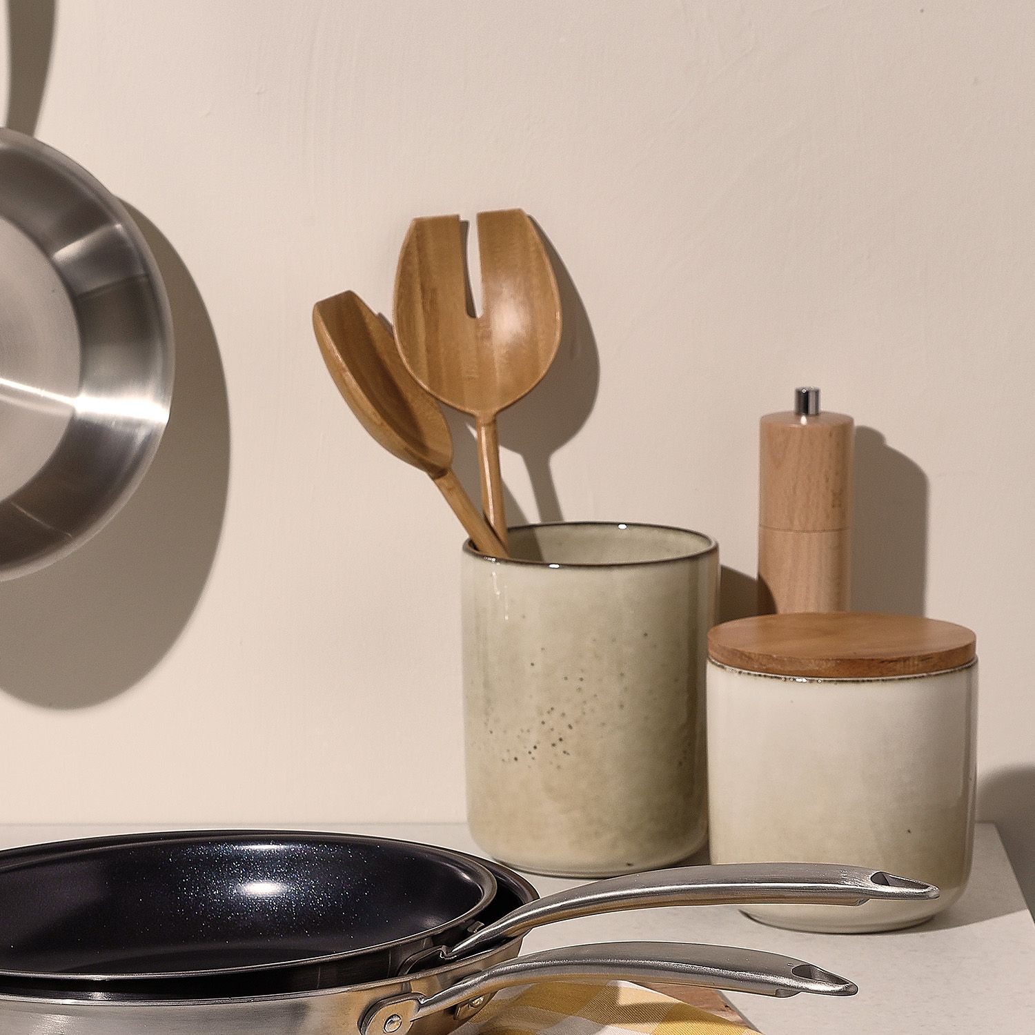 Servez avec style grâce au set de couverts de service en bois de hêtre de 8,0 cm de la collection...