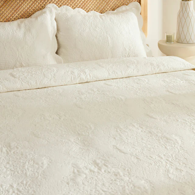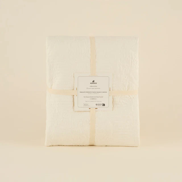 Ensemble de Couvre-lit Camille Écru 230x240 cm + 2 Taies (50x70 cm)