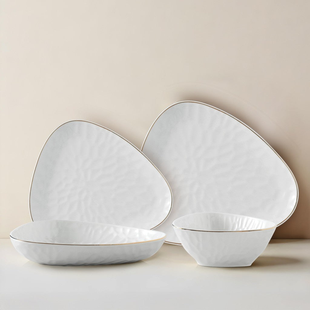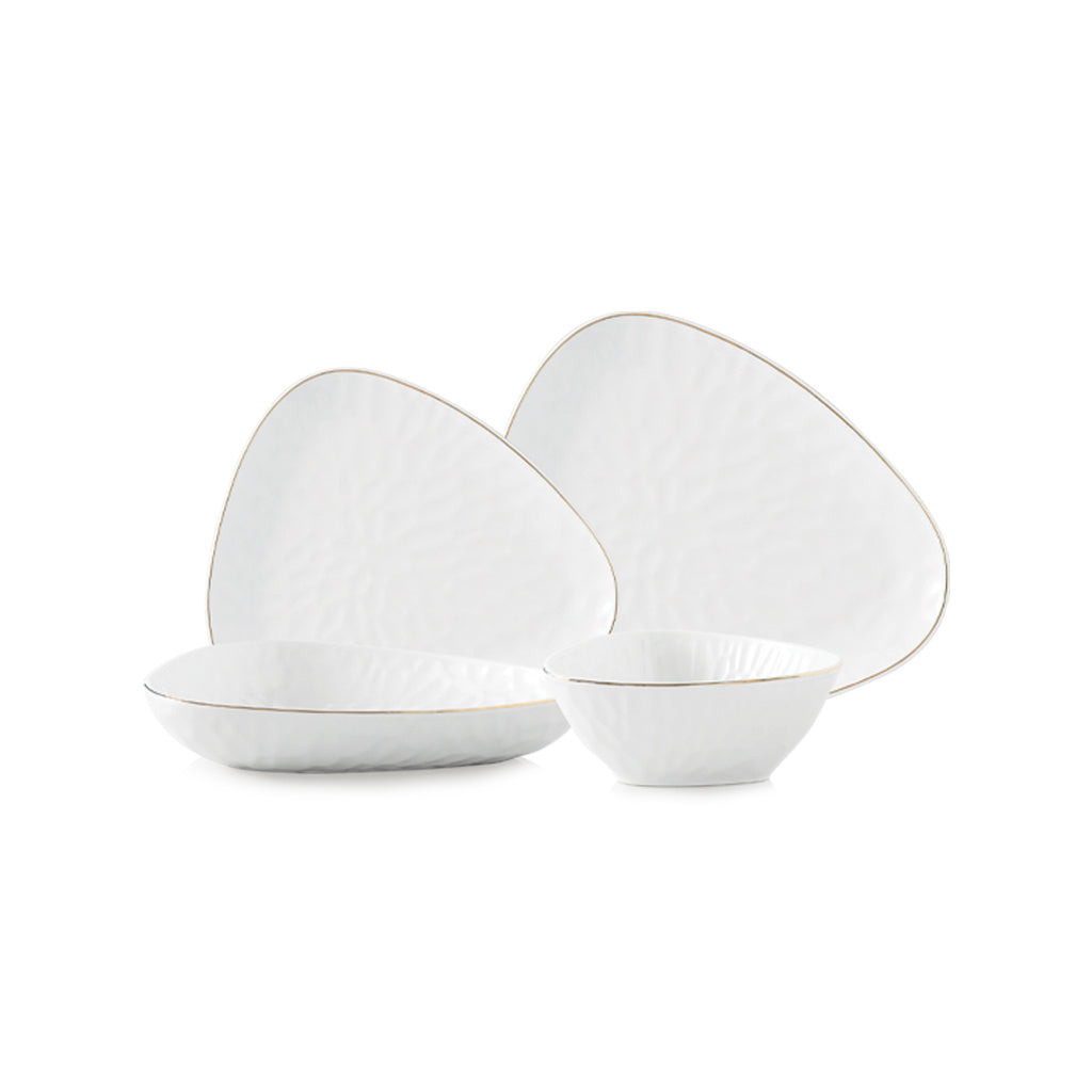 Découvrez la beauté élégante de cette vaisselle en porcelaine de 24 pièces! Avec un design organique unique, un accent doré fin et une texture élégante, il apporte luxe et sophistication à n'importe quelle table/ Parfait pour des moments spéciaux ou un usage quotidien - une vaisselle qui impressionne.