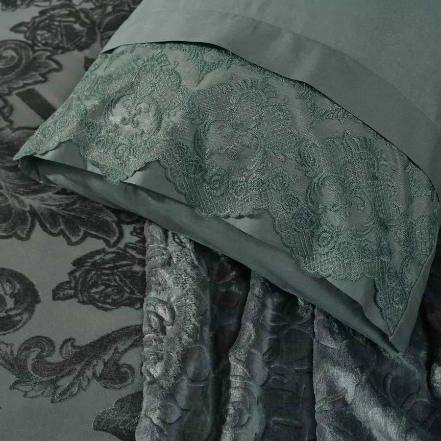Karaca Home Valeria Best 8-Piece Bedding Set, Teal Set includes: 1 x lace duvet cover: 200 cm x 220 cm...