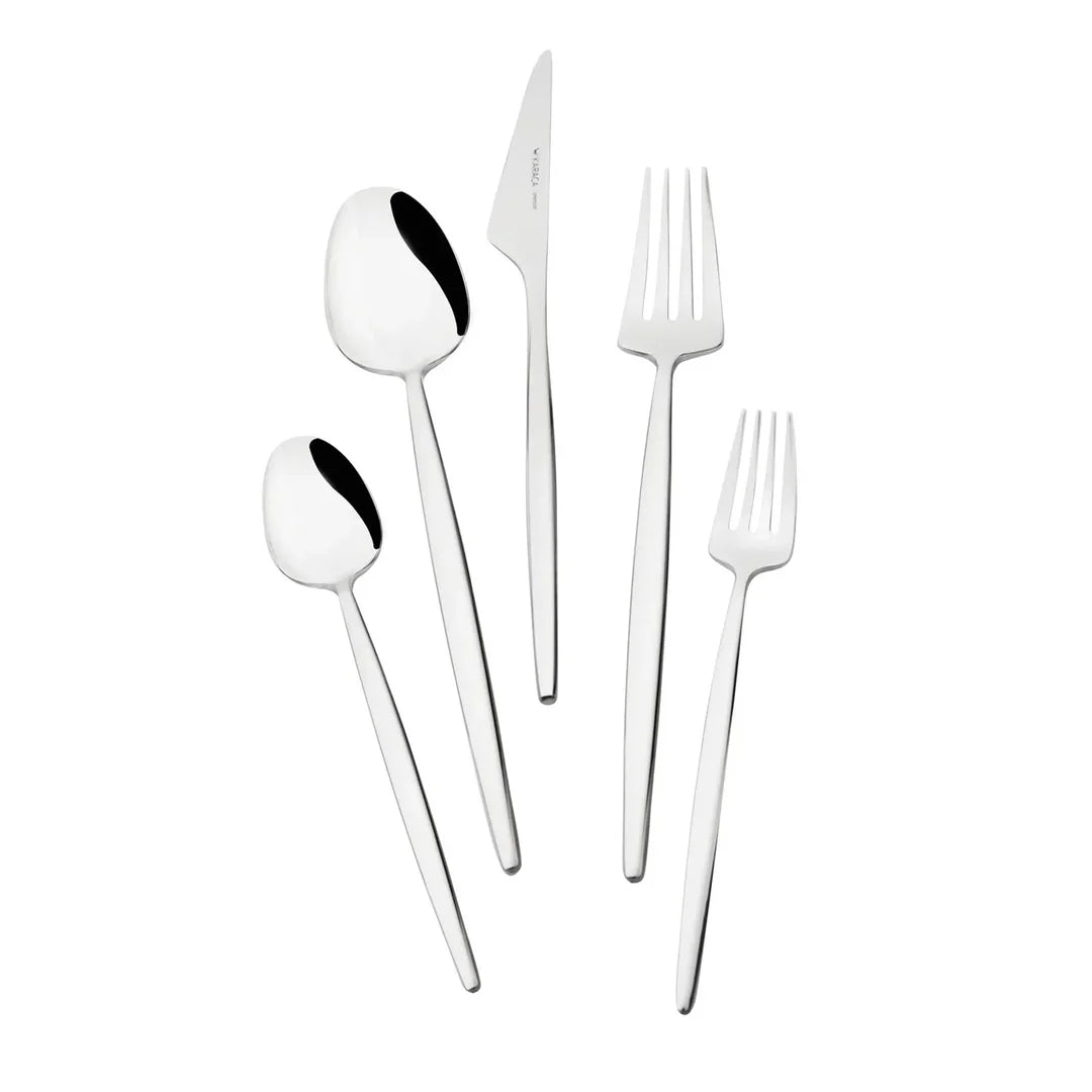 Contenu de l'ensemble: 12 cuillères à soupe (21,6 cm, 4mm) 12 fourchettes (21,6 cm, 4mm) 12 couteaux (23,6 cm, 7,5 mm) 12 cuillères à dessert (16,4 cm, 2,5 mm) 12 fourchettes à dessert (16,5 cm, 2,5 mm) 12 couteaux à dessert (19,1 cm, 5 mm) 12 cuillères à thé (11 cm, 2mm)