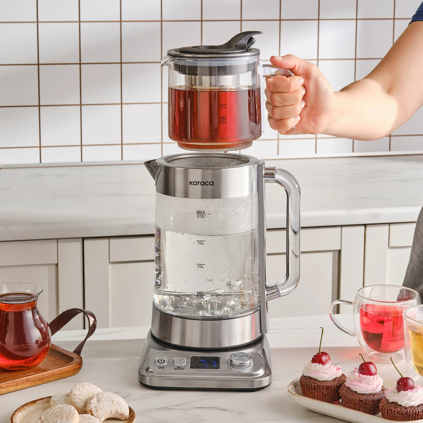 La théière et le réservoir d’eau sont en verre – sain, sûr et durable.