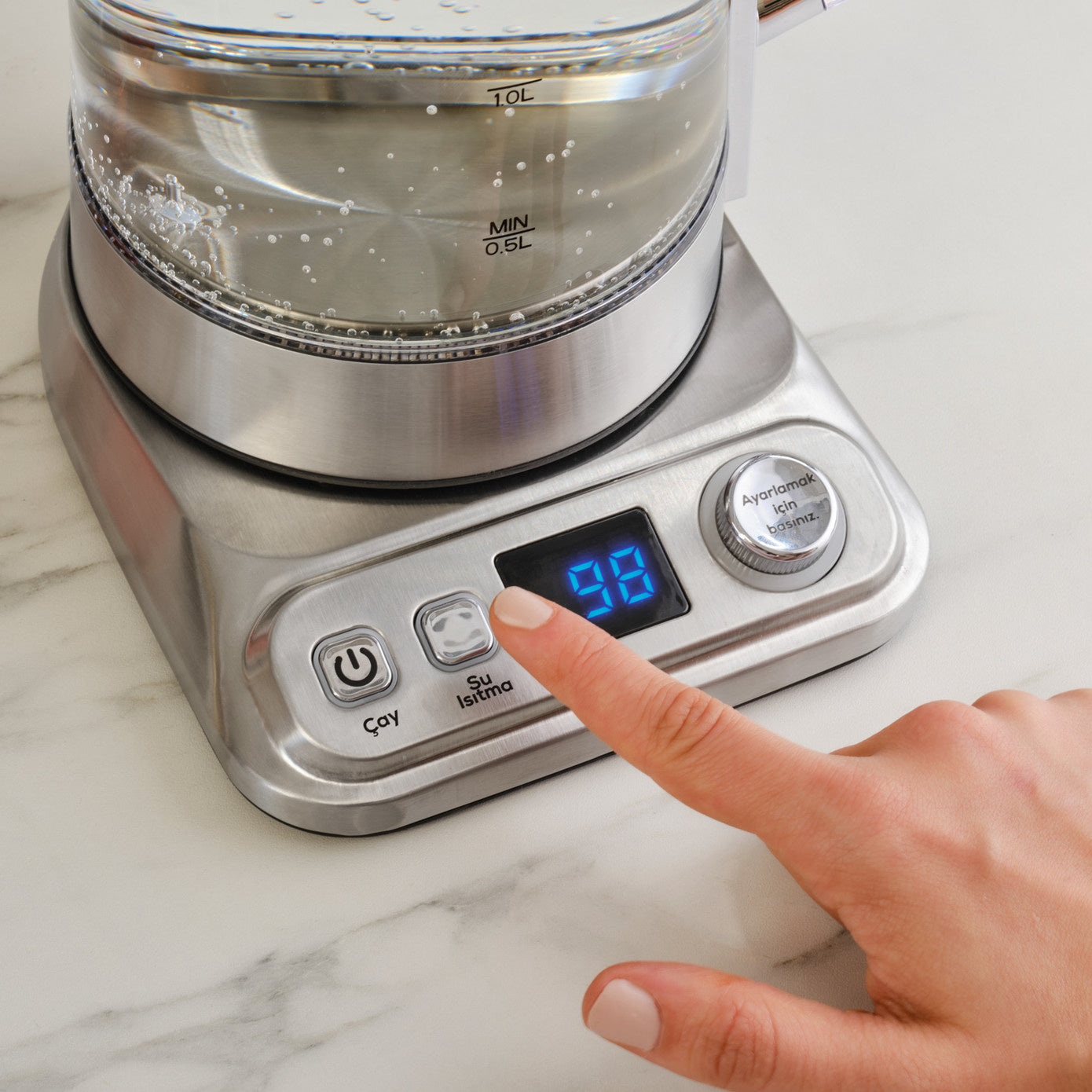 Maintient le thé à 89°C, 91°C, 93°C ou 95°C sans dépenser plus d’énergie.