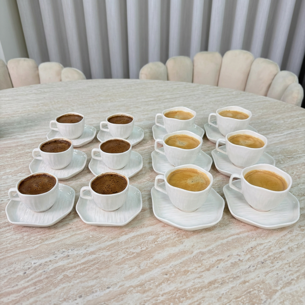 Inhoud 6 x kop 90ml 6 x schotel