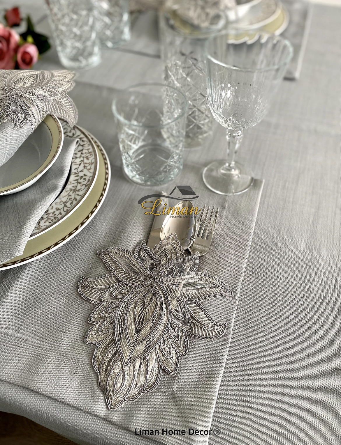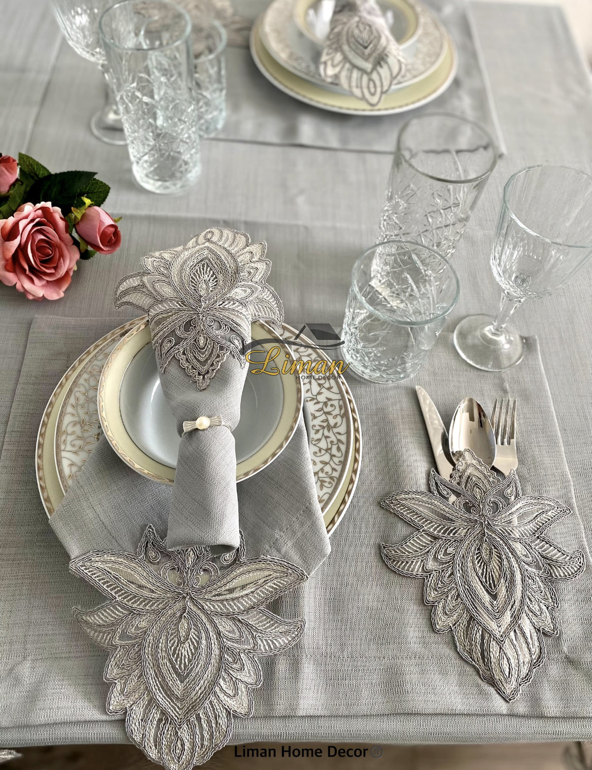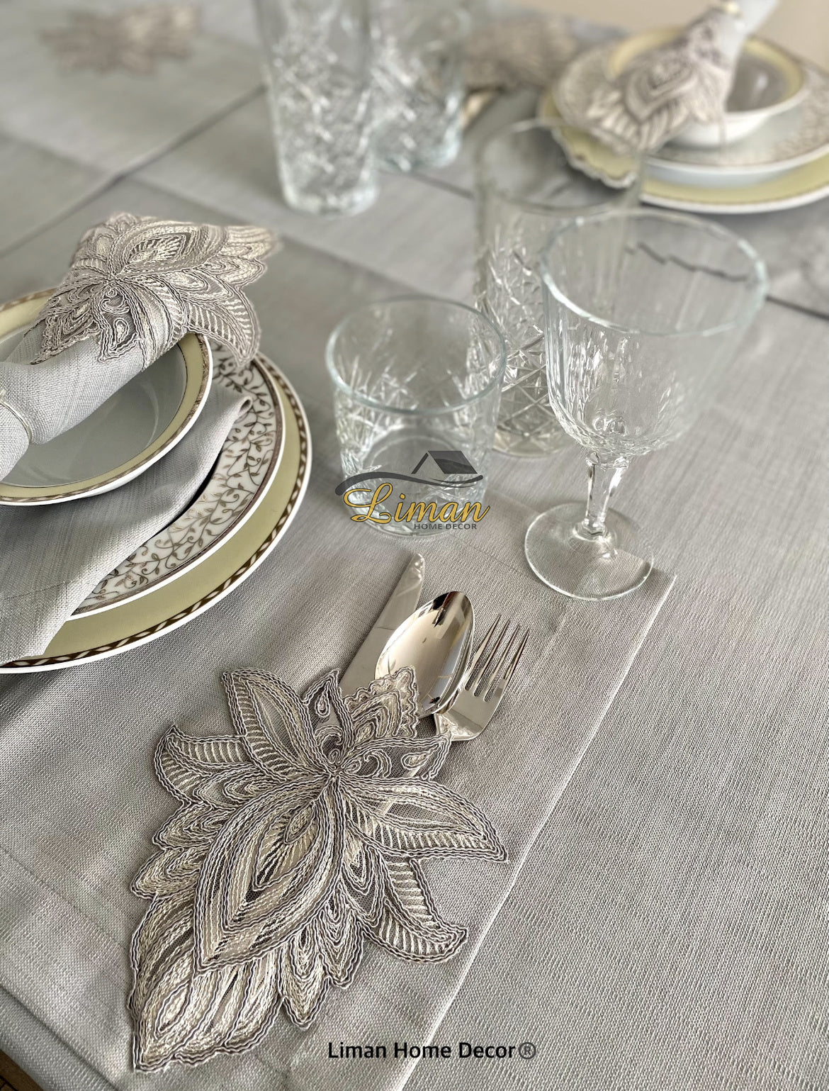 Lotus Tafelkleed Set Met Placemat Grijs 34 Dlg