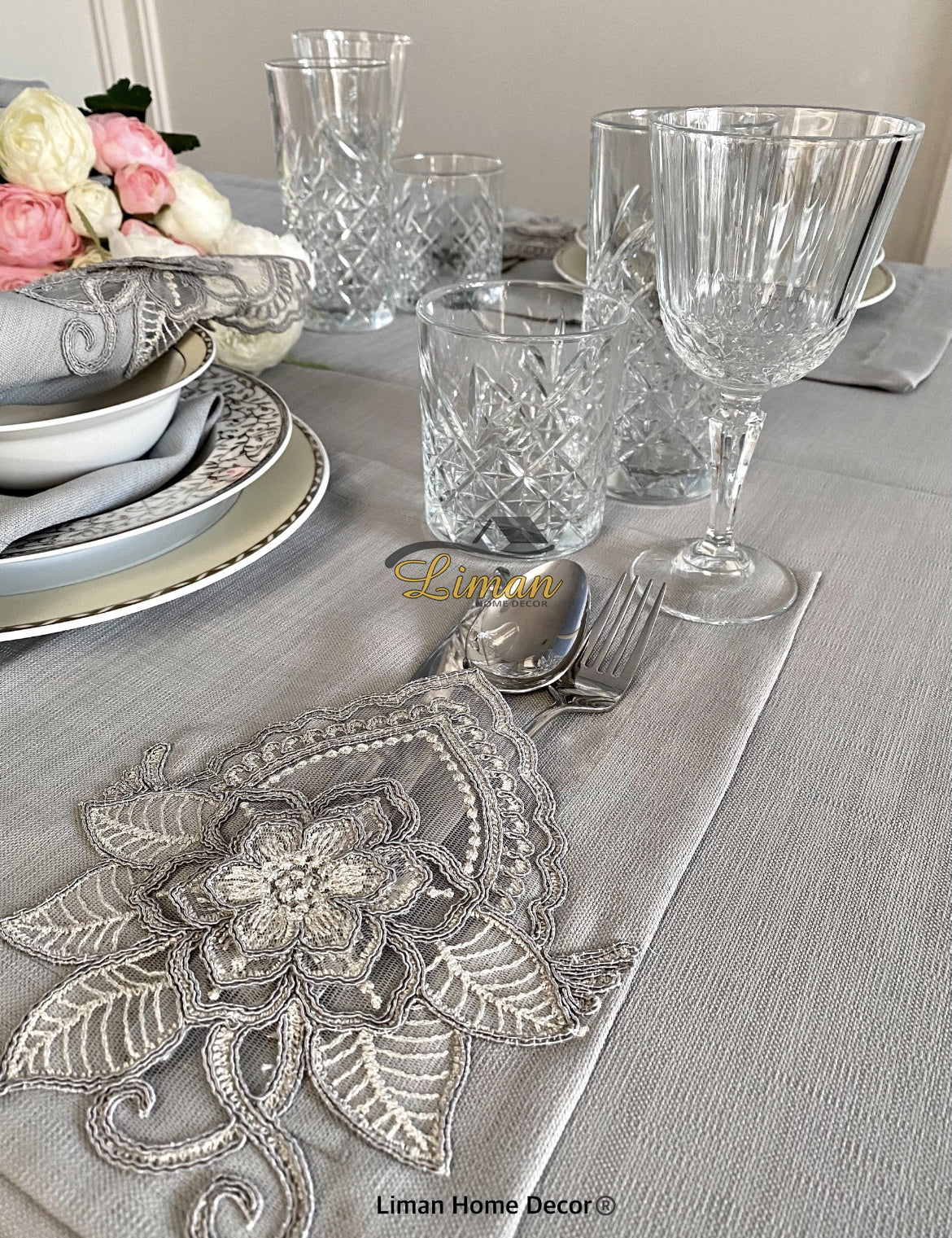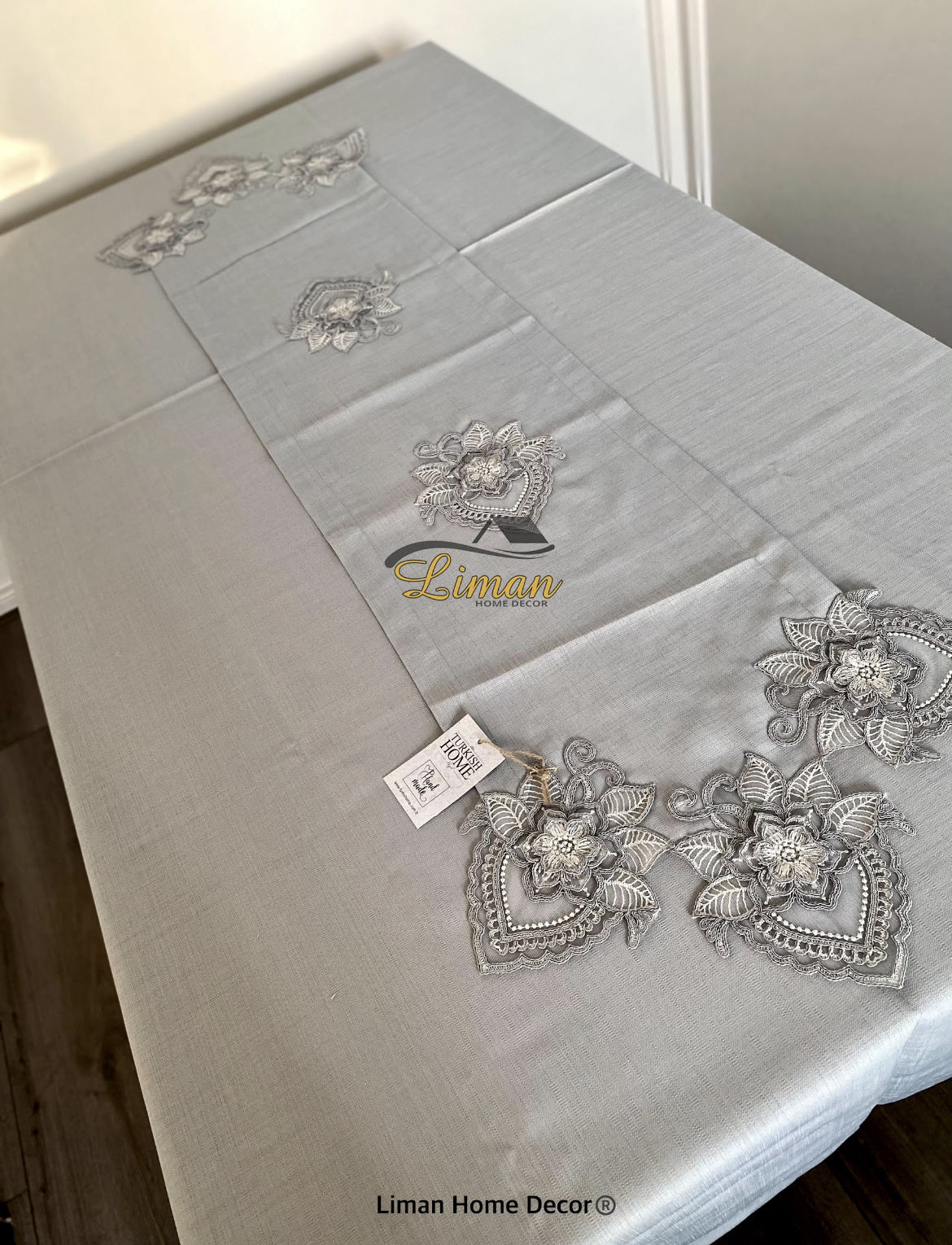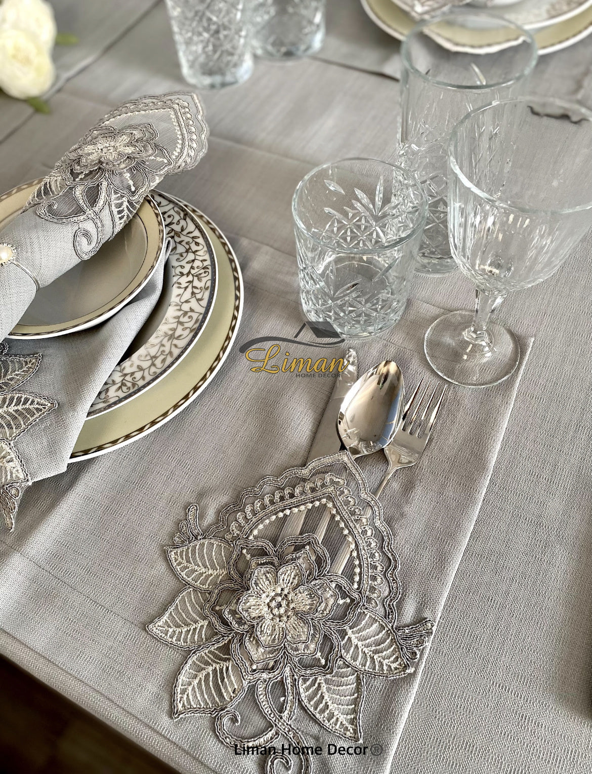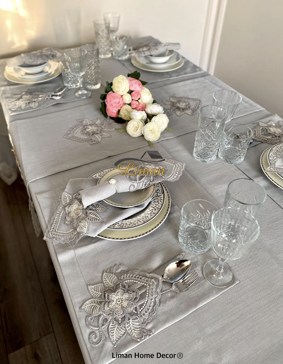 Menekse Tafelkleed Set Met Placemat Grijs 34 Dlg