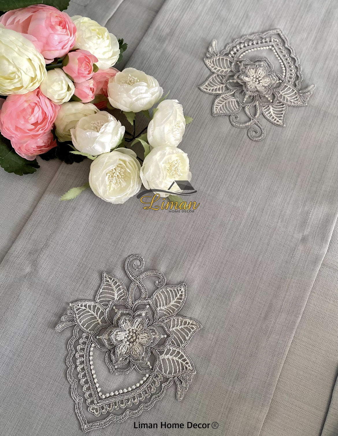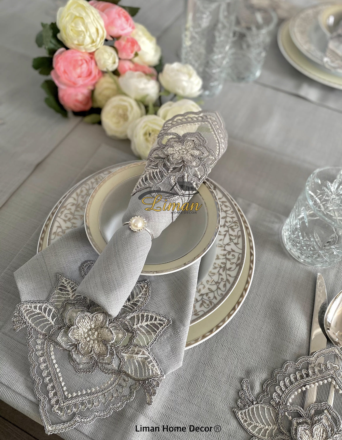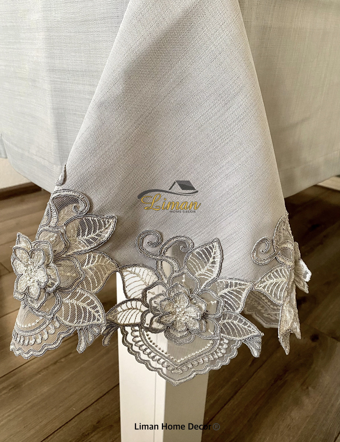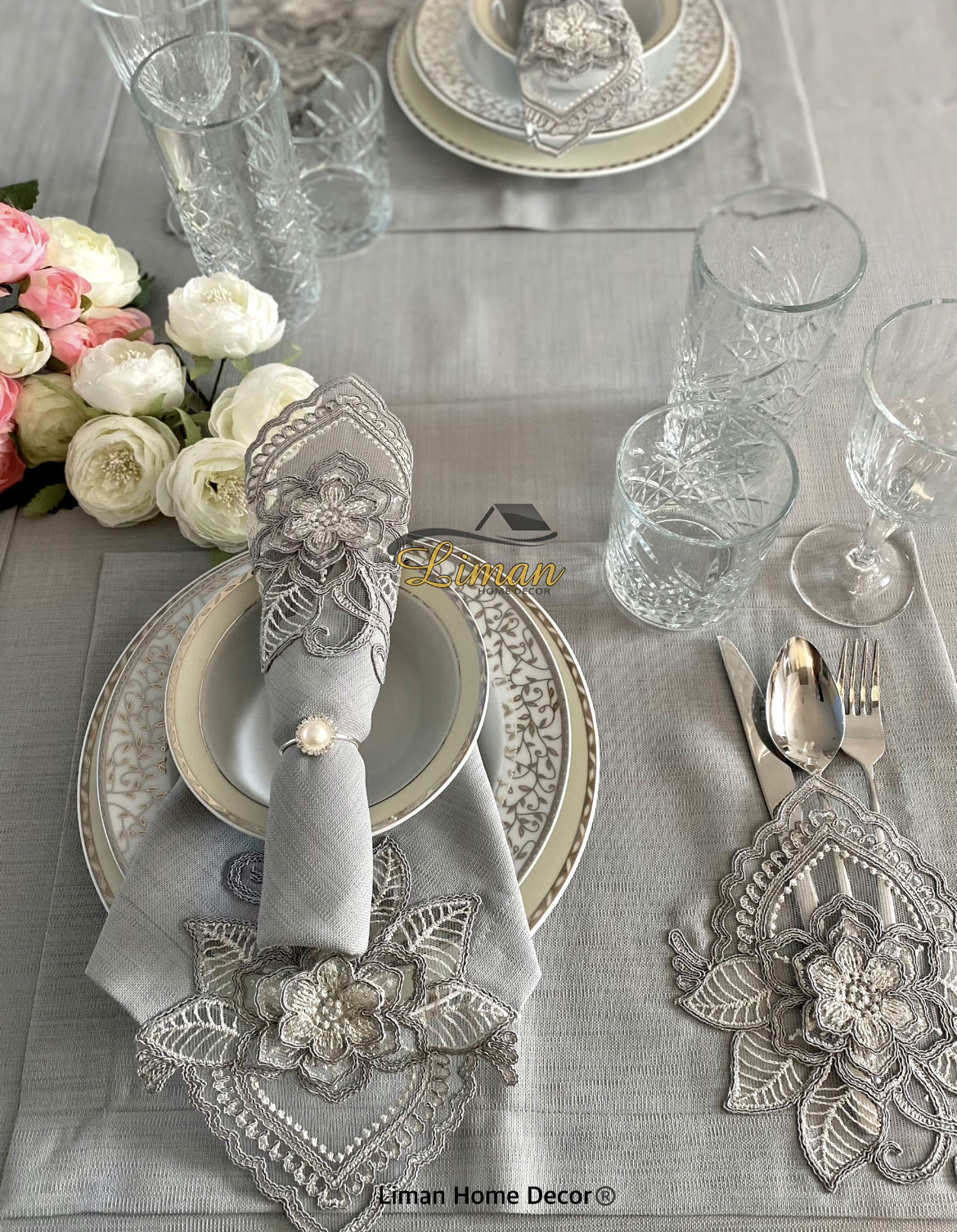 Menekse Tafelkleed Set Met Placemat Grijs 34 Dlg