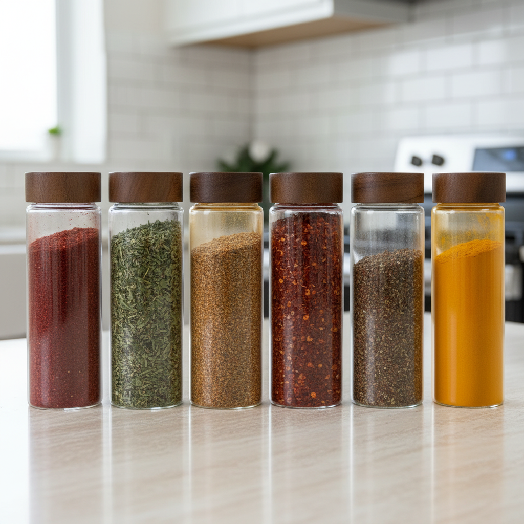 Cet ensemble de six pot à épices en acacia de 15 cm est idéal pour organiser et conserver vos herbes et épices préférées avec style. Son format compact s’adapte parfaitement aux tiroirs de cuisine, étagères à épices ou au plan de travail. L’aspect naturel de l’acacia apporte une touche chaleureuse et moderne à toute cuisine.