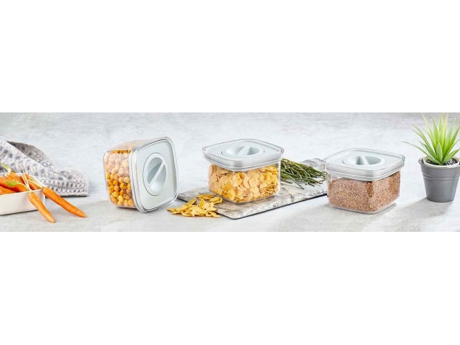 Bewaardoos 500 ml Deze handige voorraadpotten maken de keuken compleet. De set bestaat uit 3 voorraaddozen waarin verschillende voedingsmiddelen opgeborgen kunnen...