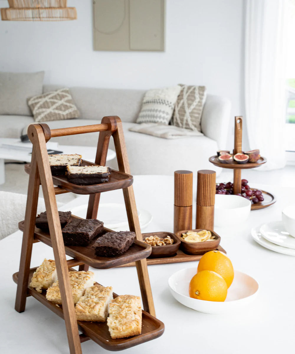 De Acacia Scala etagère combineert een warm houtdesign met moderne lichtheid.