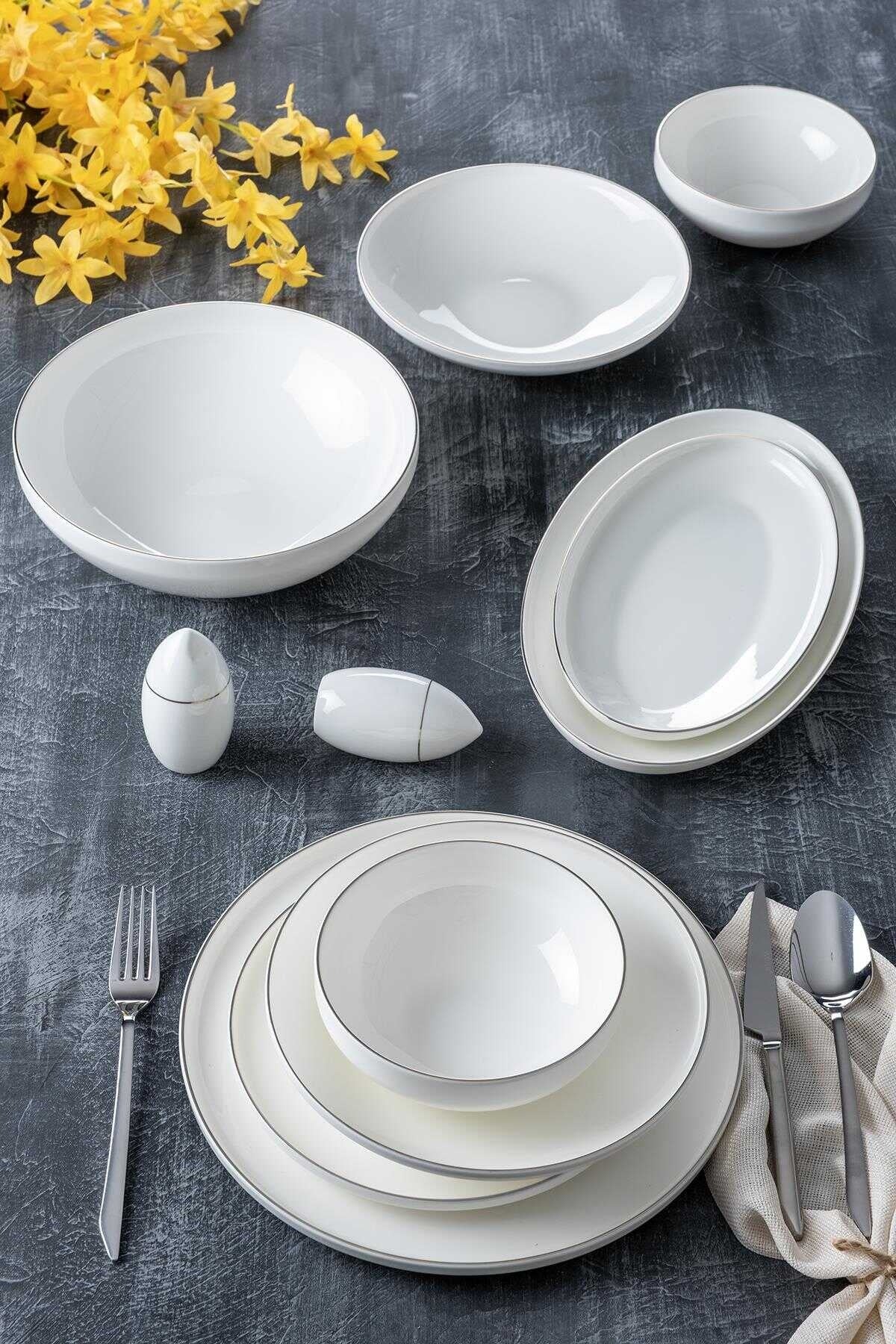 "Verwen jezelf en je gasten met een elegante porseleinen serviesset van 27 delen voor 6 personen, beschikbaar in verfijnd goud of zilver – de perfecte combinatie van luxe en functionaliteit voor elke speciale gelegenheid."