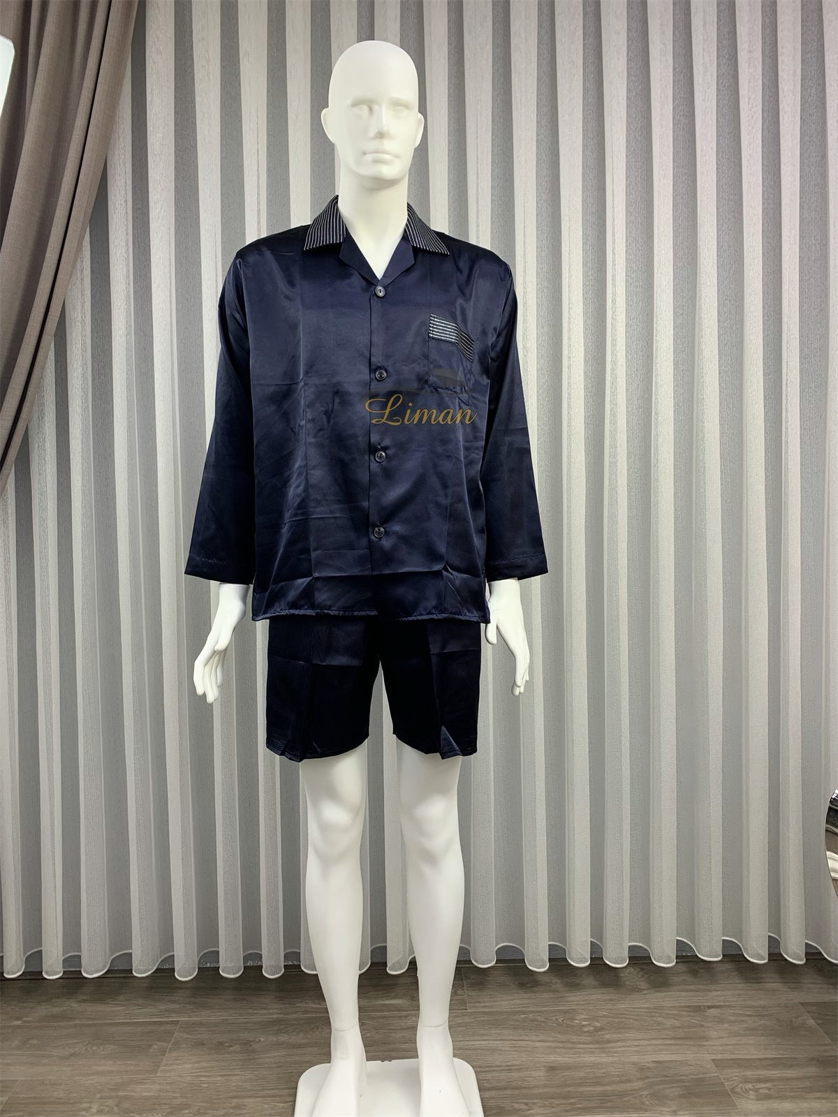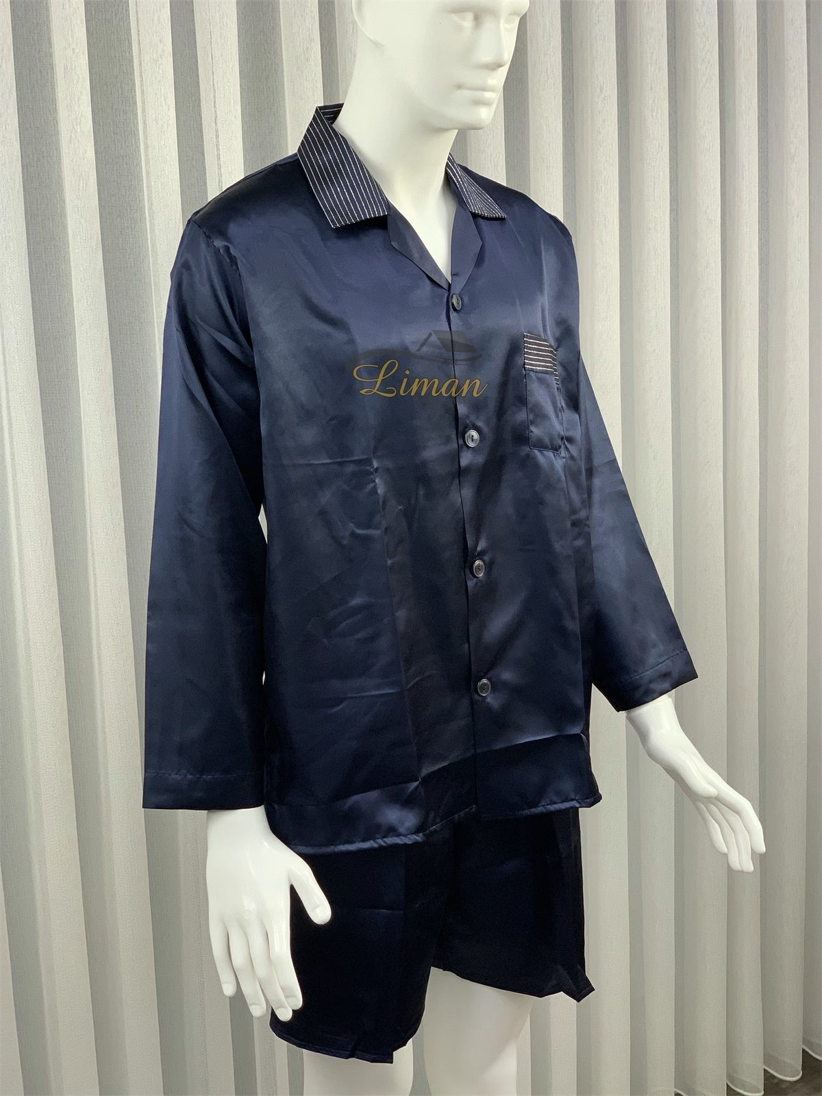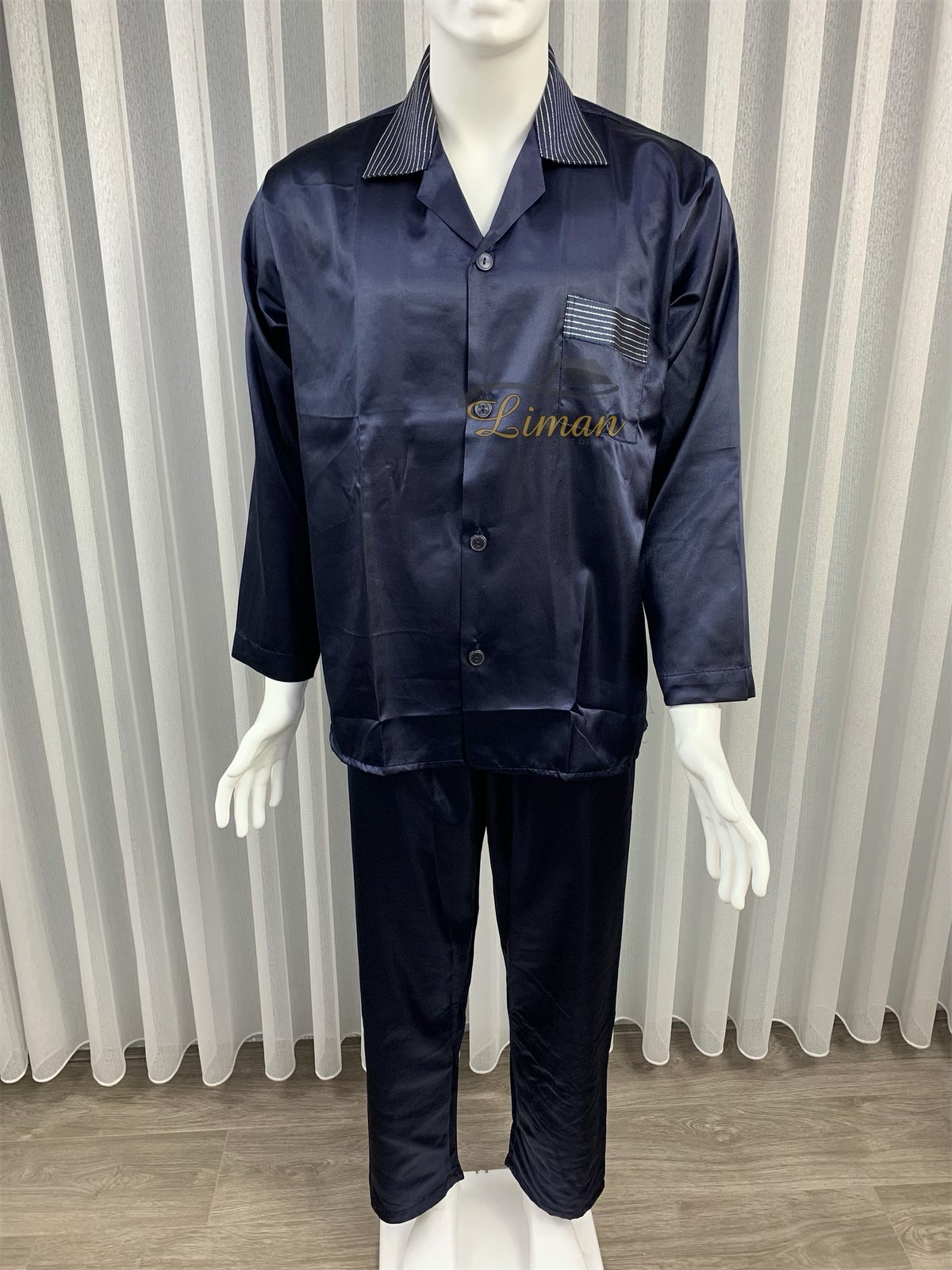 Batista 4 Delig Luxe Satijnen Mannen Pyama Set Donker Blauw