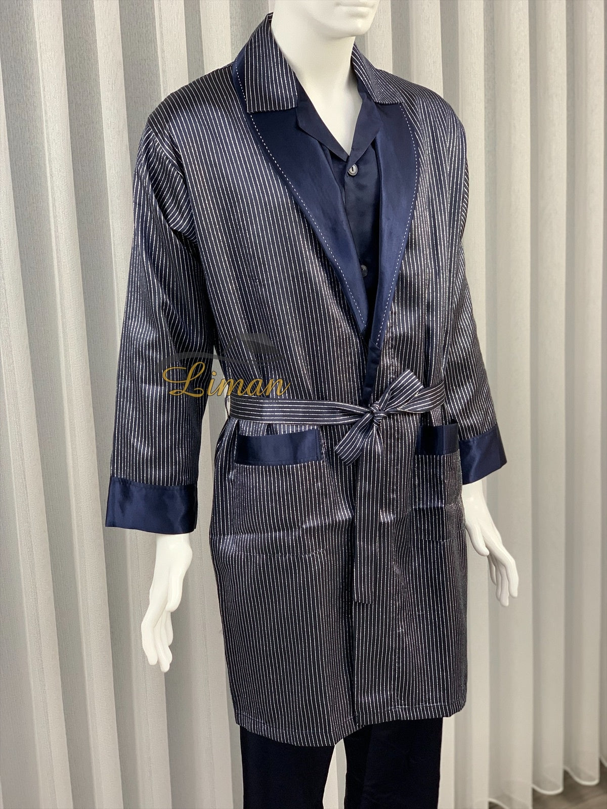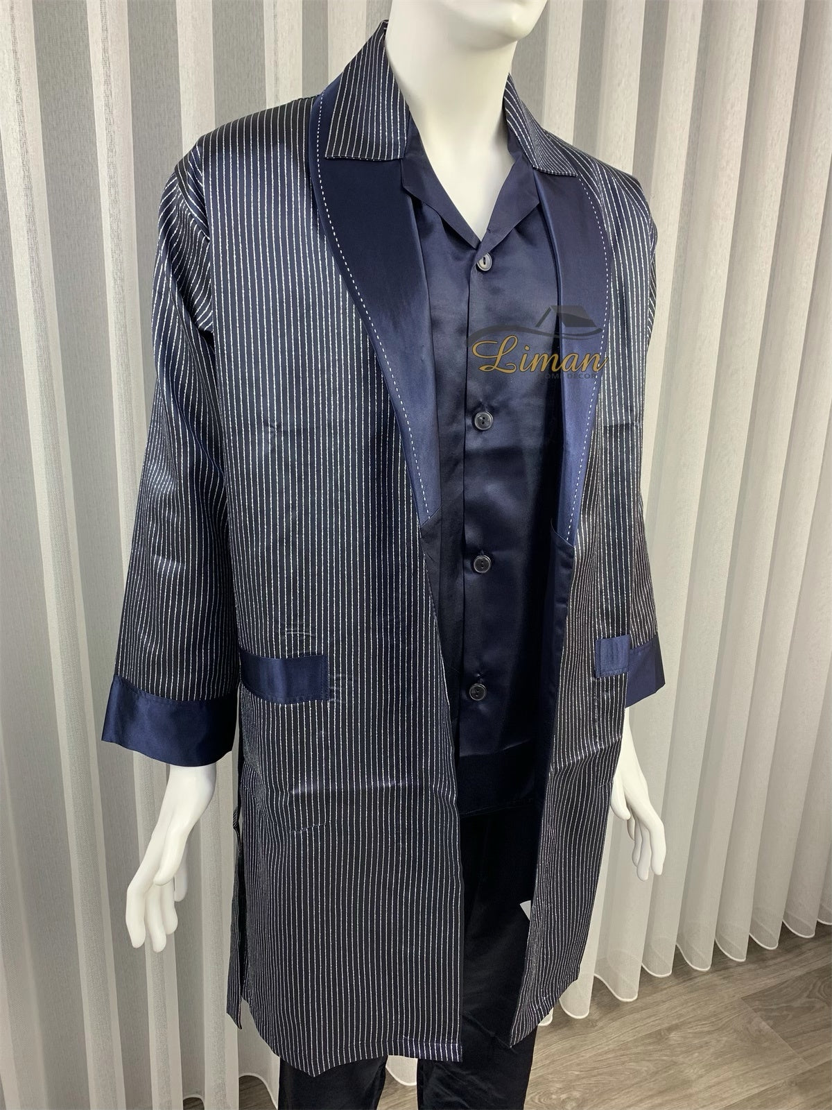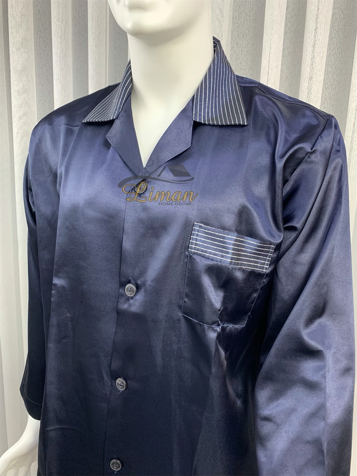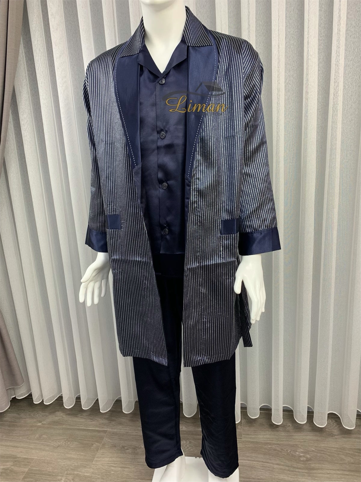 Batista 4 Delig Luxe Satijnen Mannen Pyama Set Donker Blauw