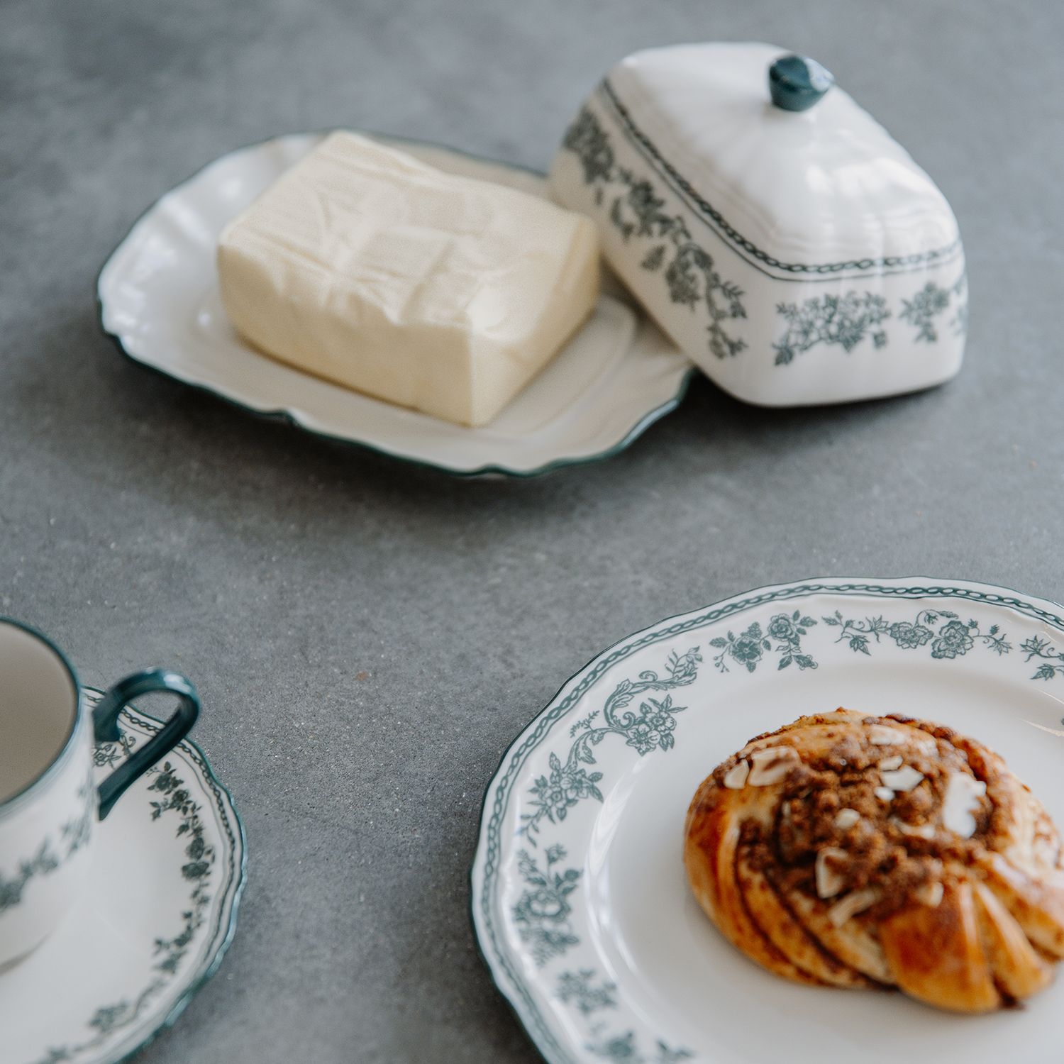 De Cyril-collectie brengt een frisse heropleving van vintage charme naar je tafel. Delicate bloemmotieven, herzien in modern groen en diep bordeaux, vinden de perfecte balans tussen nostalgisch karakter en eigentijdse stijl.