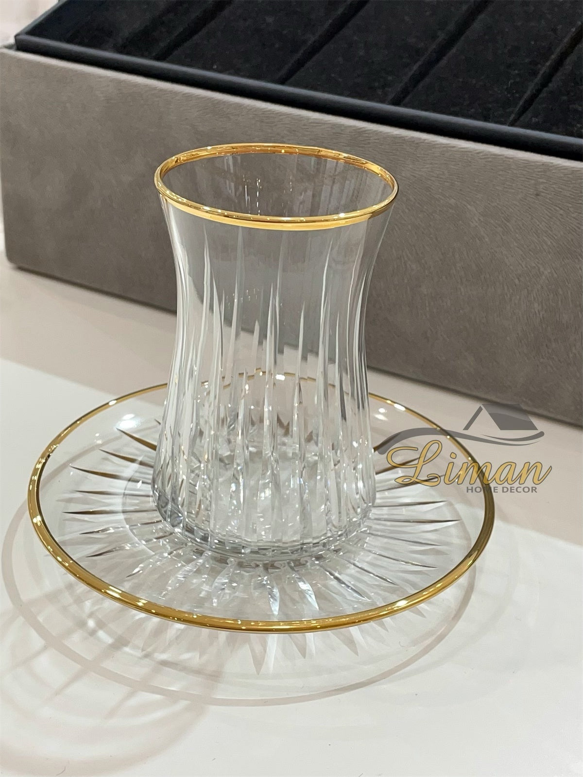 Inhoud:6 x Theeglazen met gouden rand6 x Theeschotels Handwas wordt aangeraden voor een optimaal Kwaliteits behoud