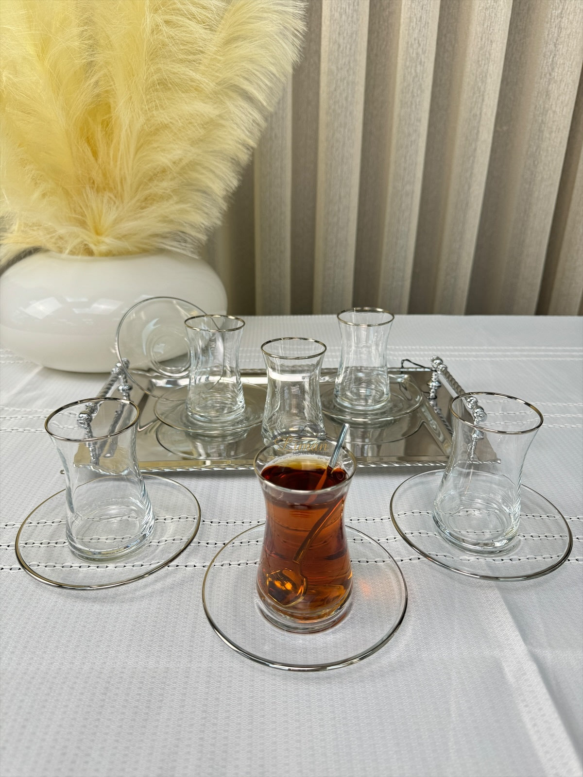 Inhoud:6 x Theeglazen met gouden rand6 x Theeschotels Handwas wordt aangeraden voor een optimaal Kwaliteits behoud