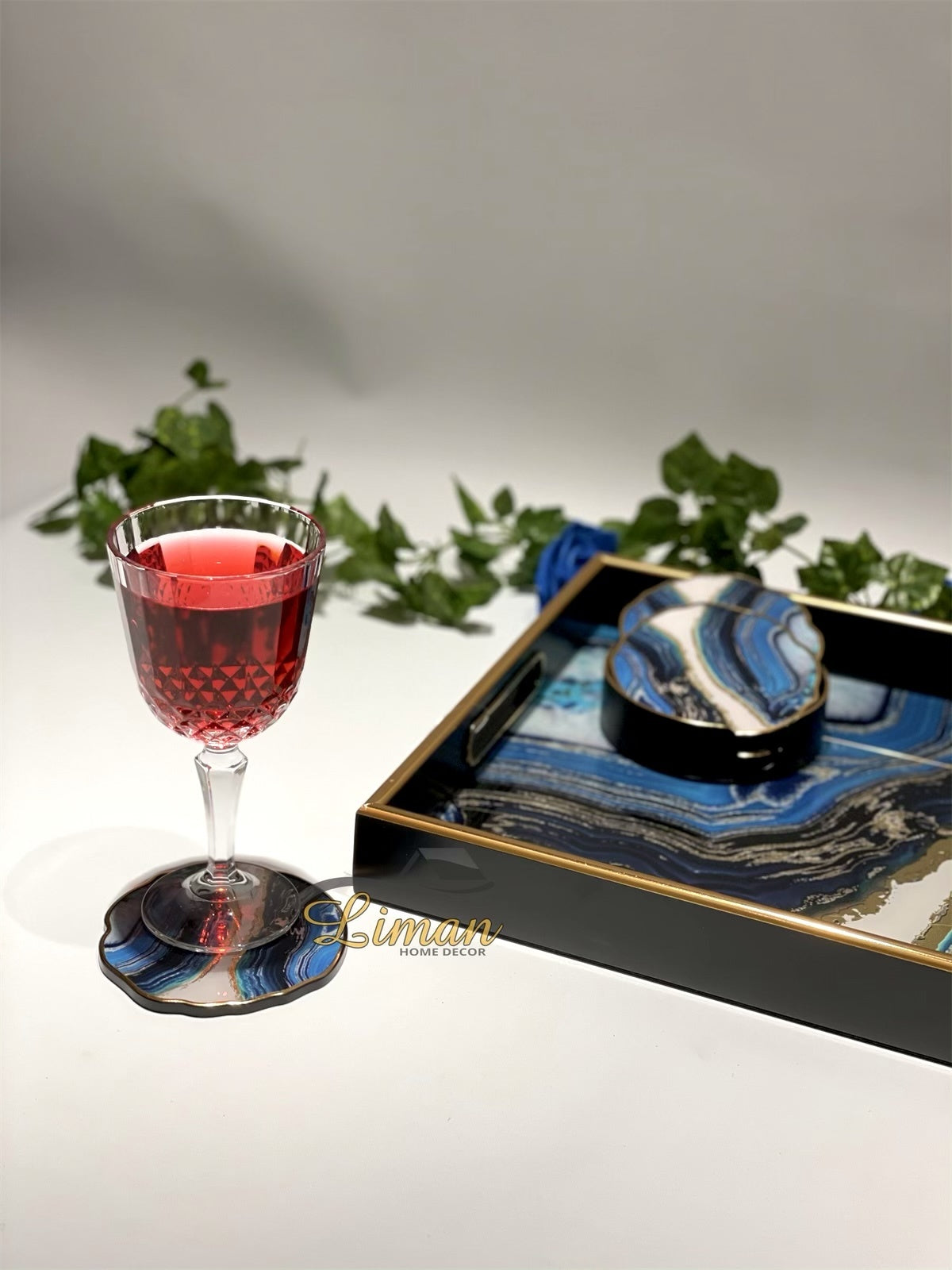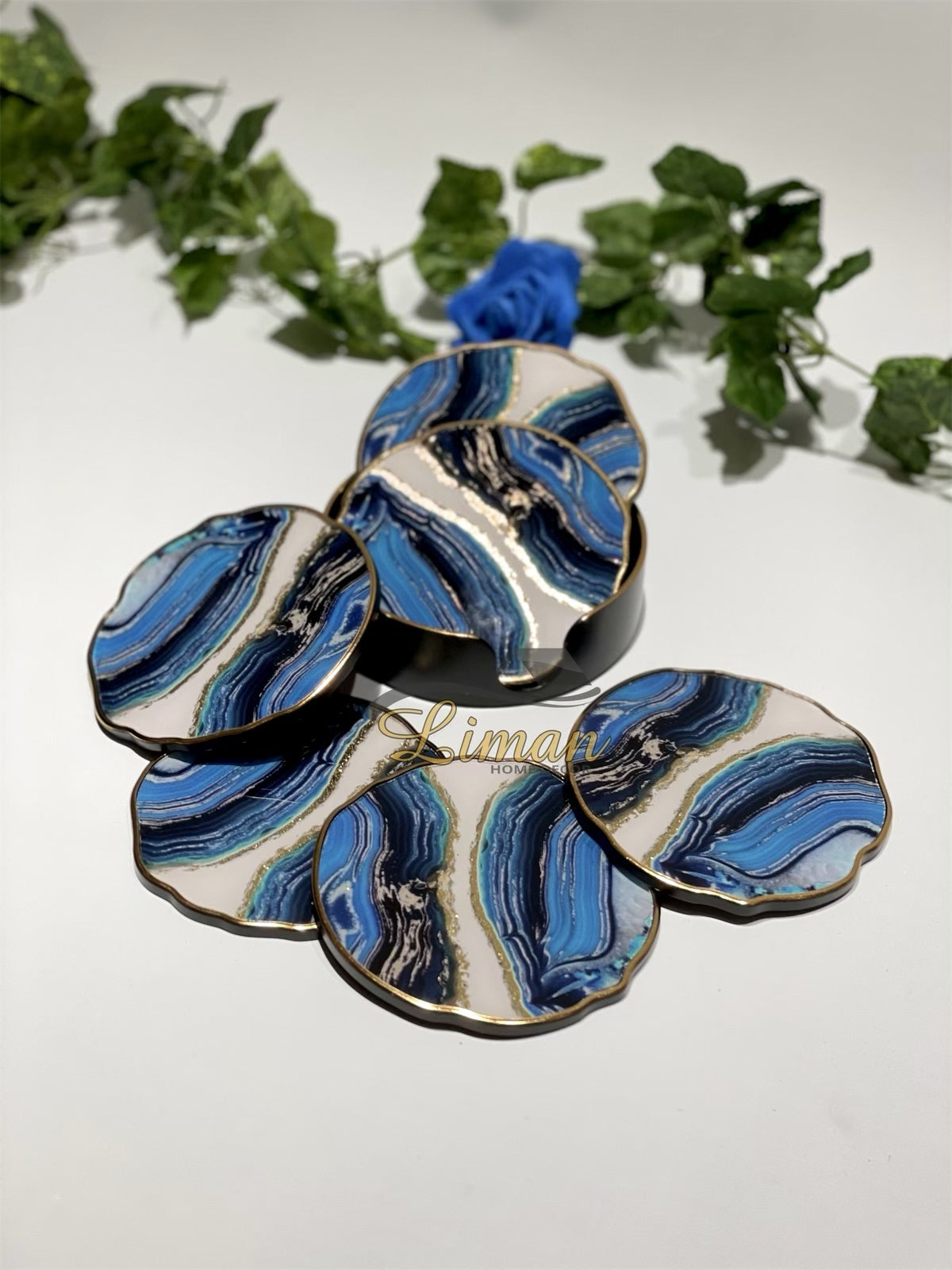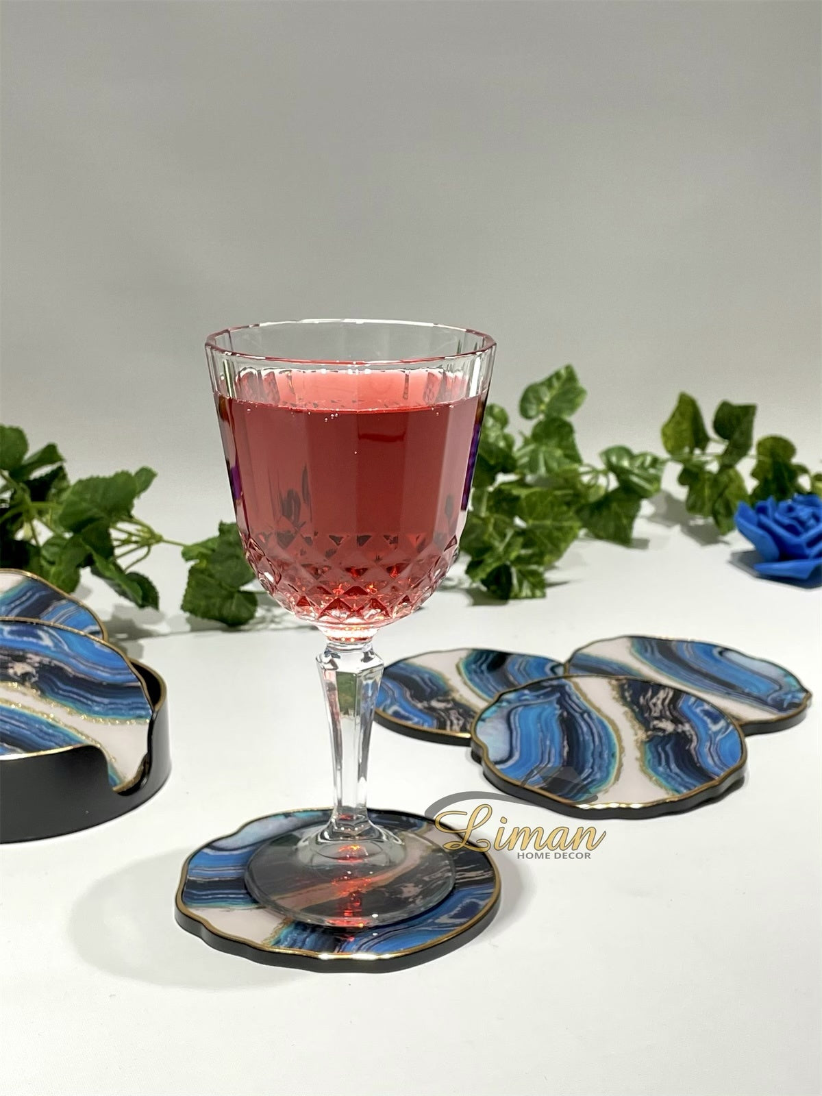 Fugurato Epoxy Style Blauw Marble Glas Onderzetter Met Stand 7 DLG