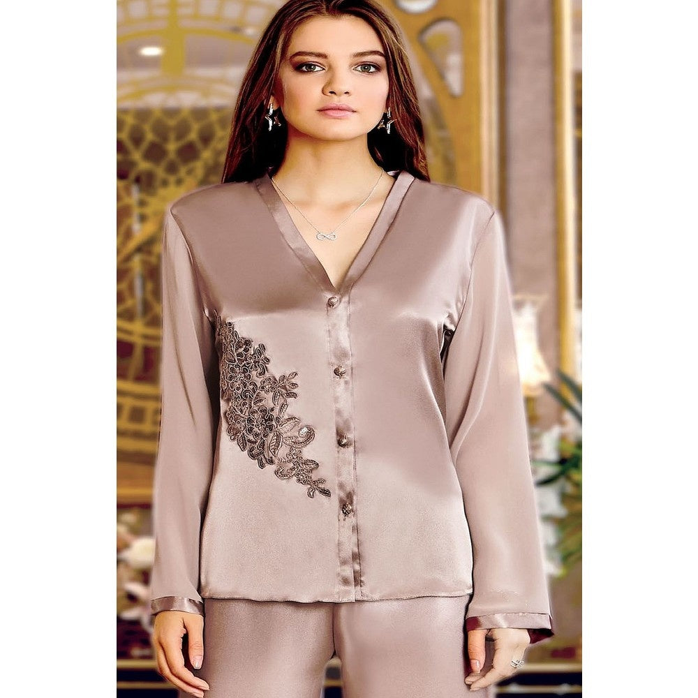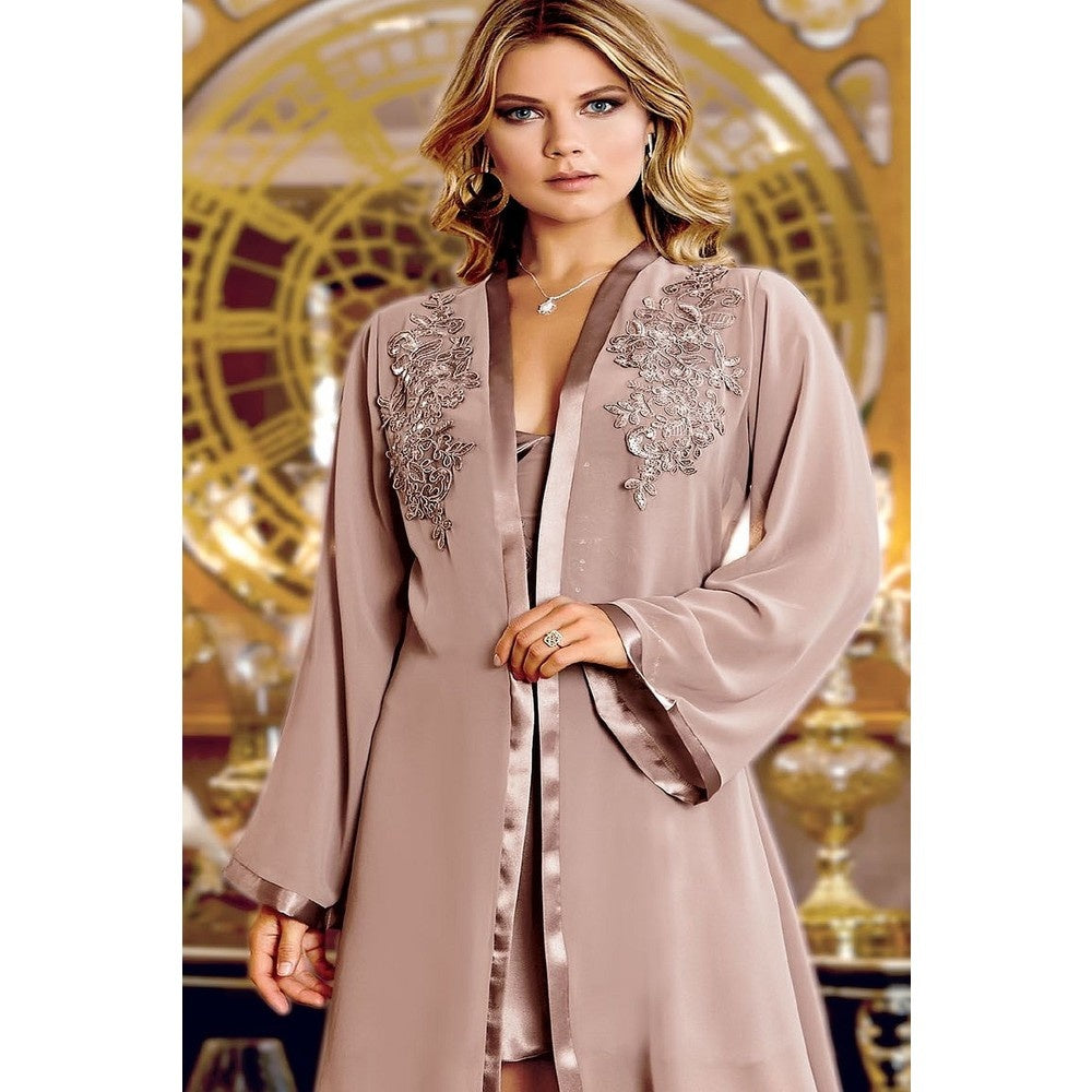 In deze heerlijk zachte pyjama zal je nooit meer uit je bed willen. De zachte set bevat een 2x top, 2x broek en slipdress met Kimono, dus je hele look is compleet!