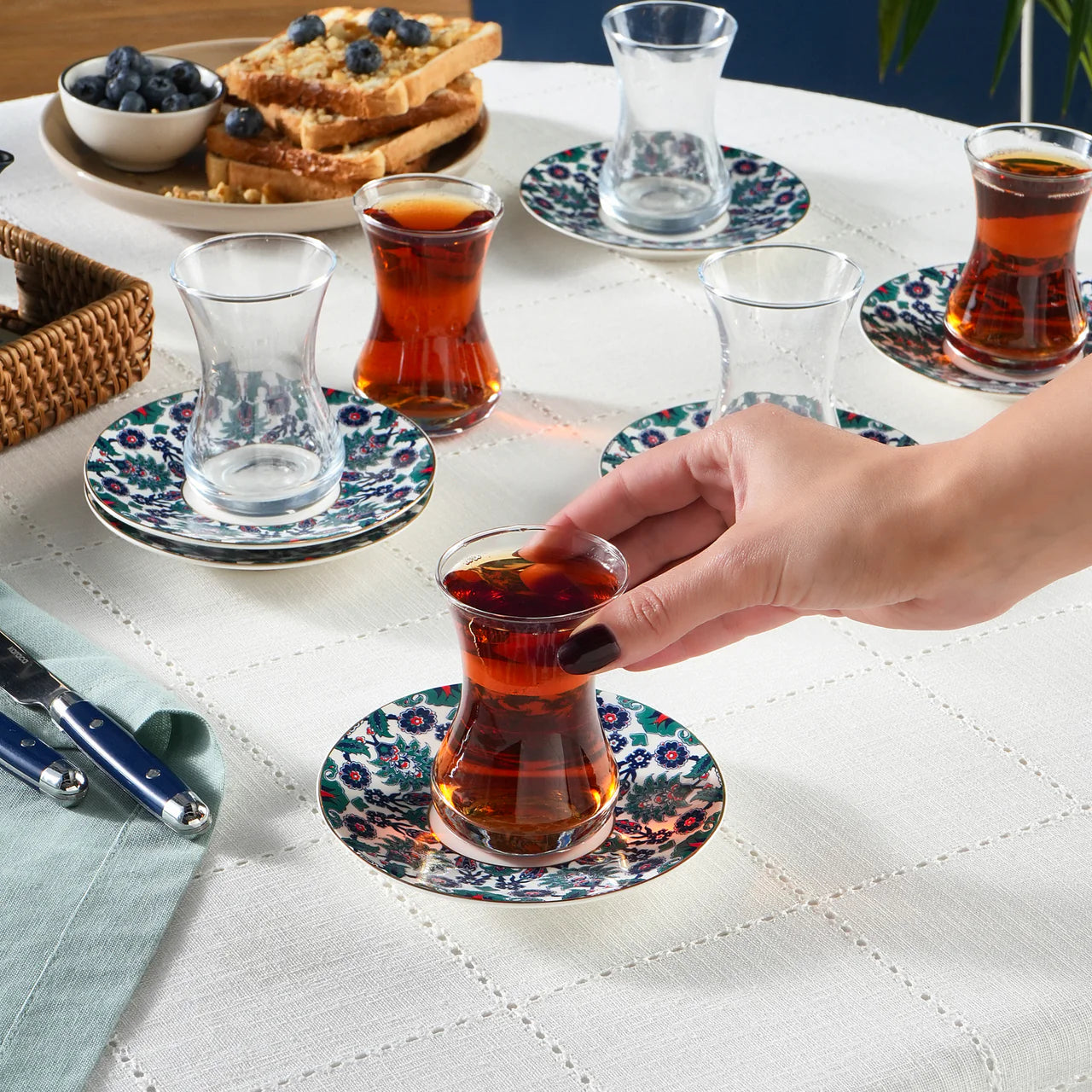 Ervaar de elegante charme van de Karaca Edirne Theeset, waar verfijnde details en tijdloos design samenkomen om elk theemoment een luxe en stijlvolle uitstraling te geven.