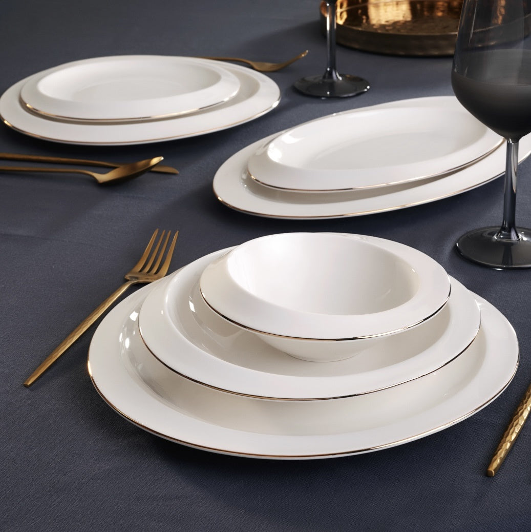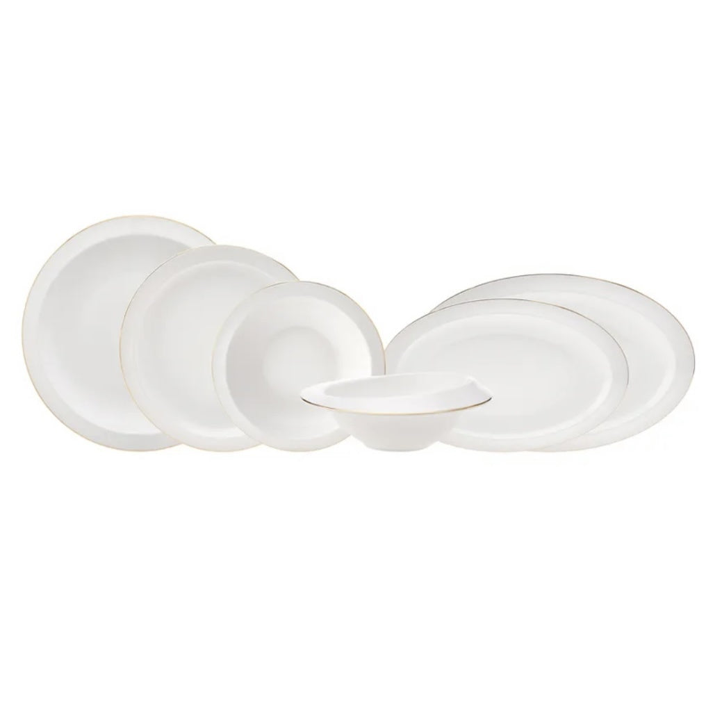 Inhoud:6 serveerbord (24 cm)6 Diepe bord (20 cm)6 Gebaks bord (19 cm)6 Soep kom (14 cm)1 slakom (20 cm)1 klein...