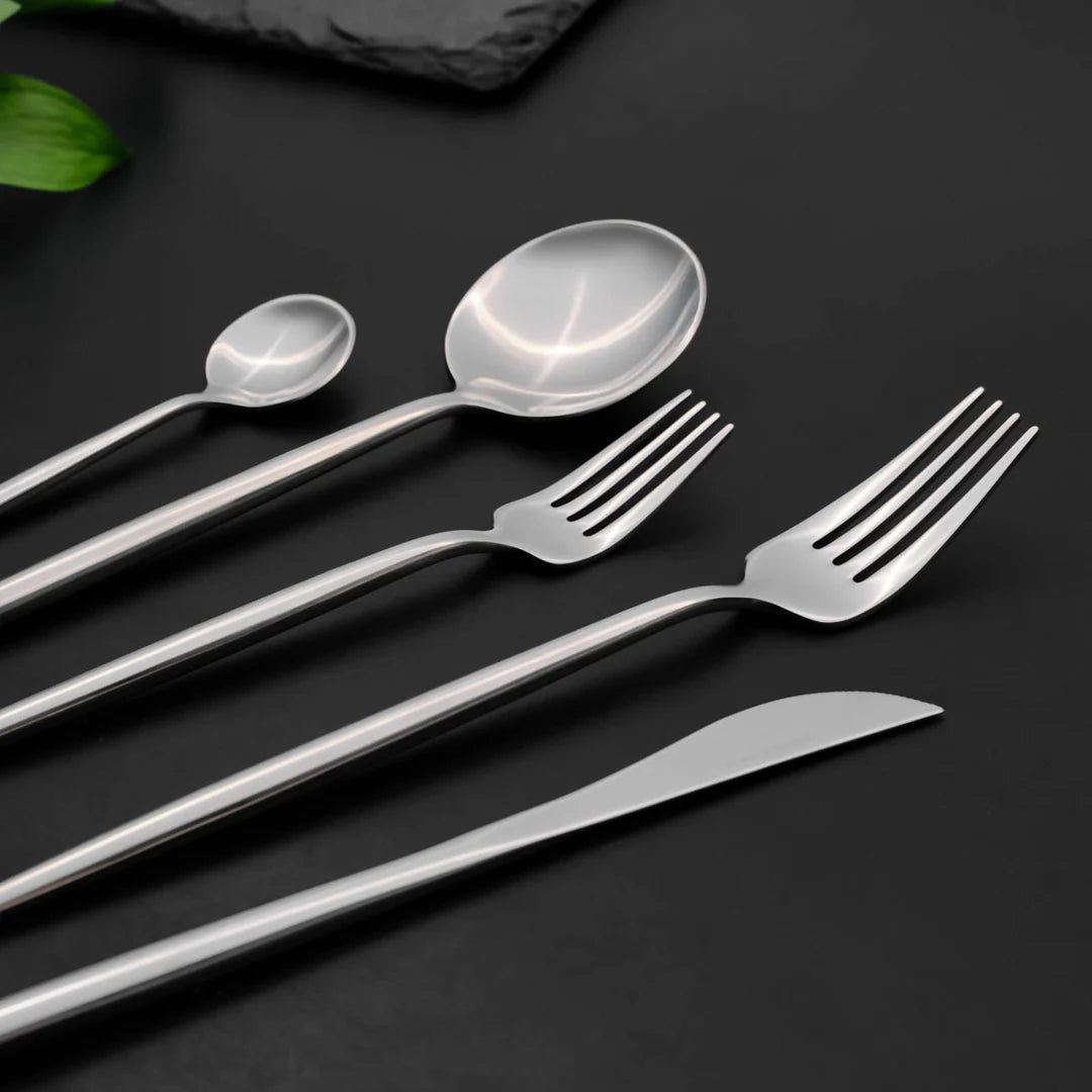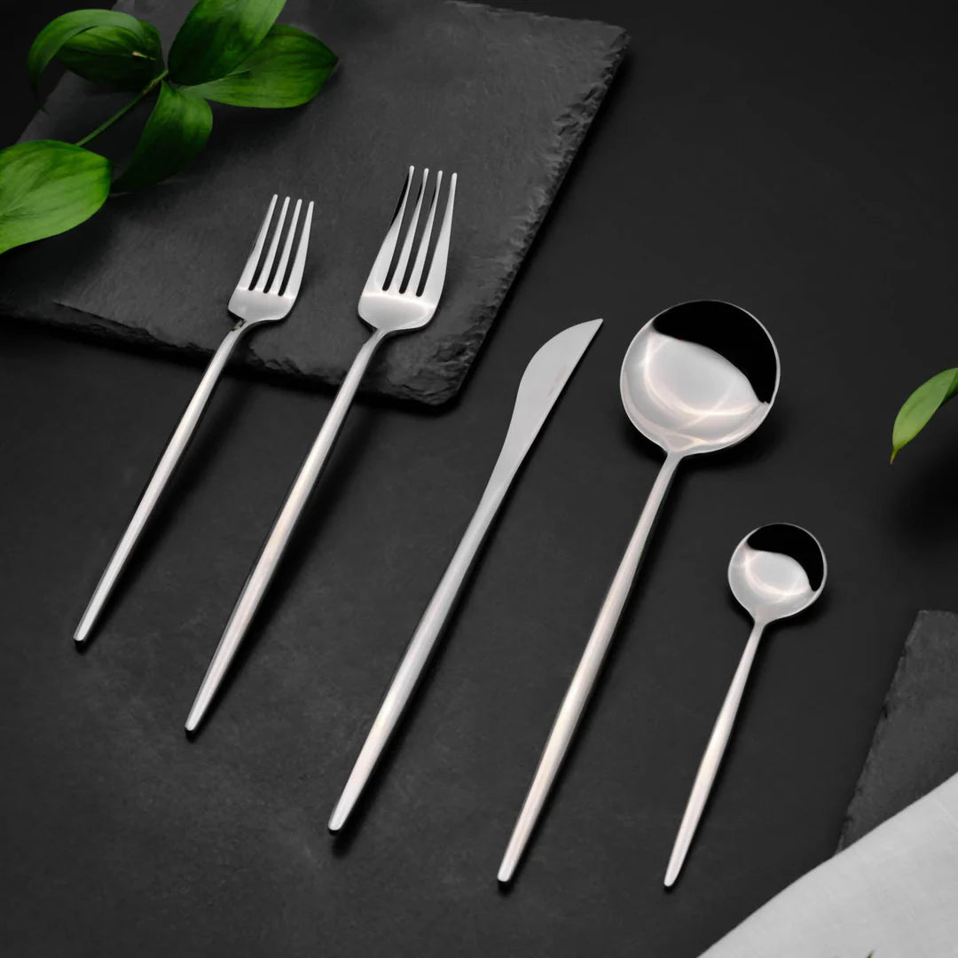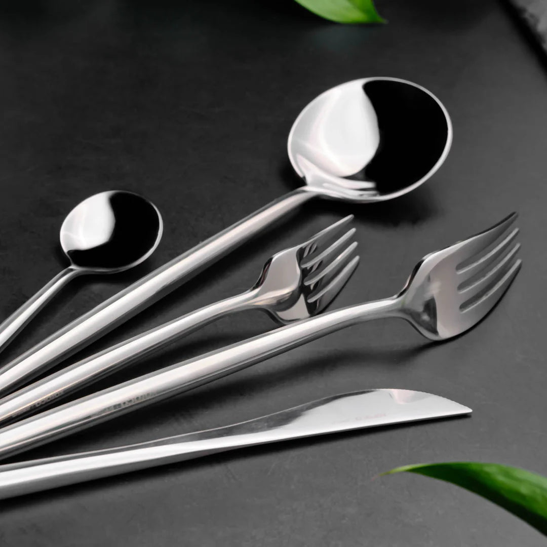 12 tafelmessen (22,5 cm) 12 eetlepels (21 cm) 12 tafelvorken (21,5 cm) 12 dessertvorkjes (18 cm) 12 theelepels (13 cm)...